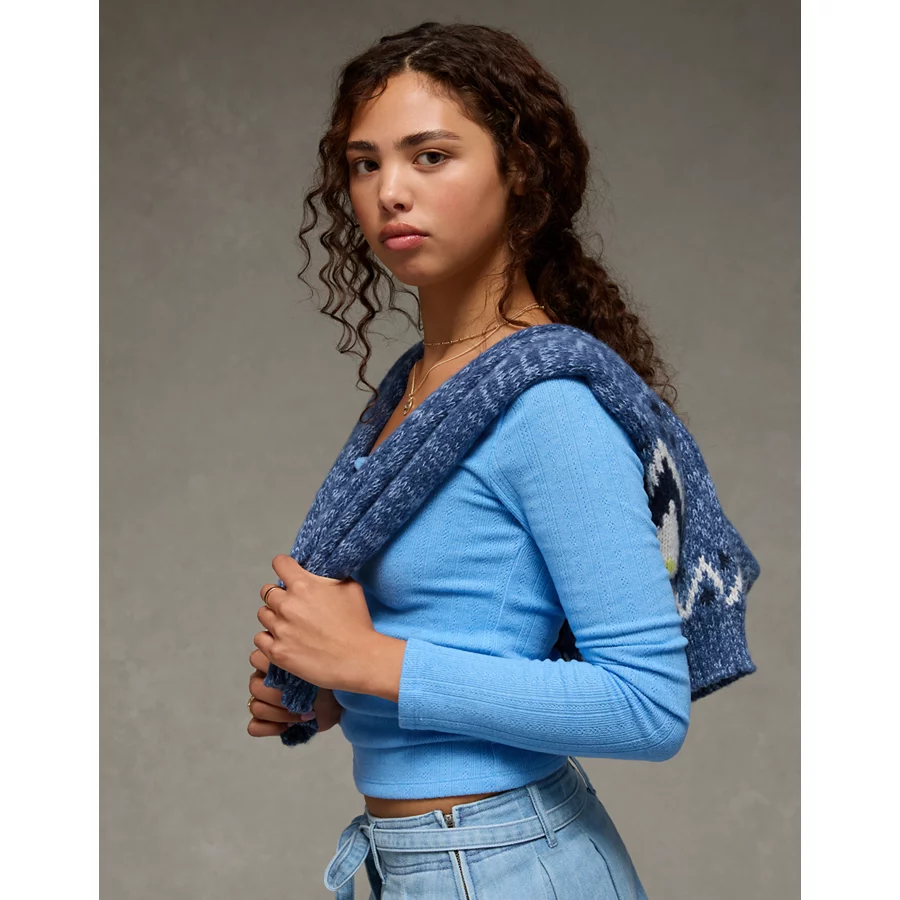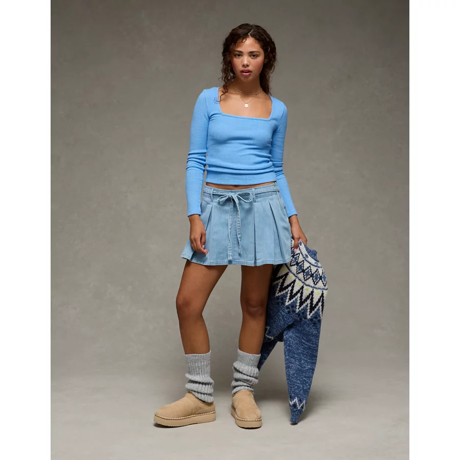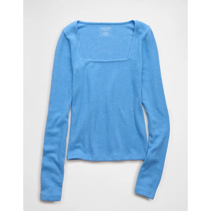 AE Long Sleeve Square Neck T-Shirt – Gravity Blue
