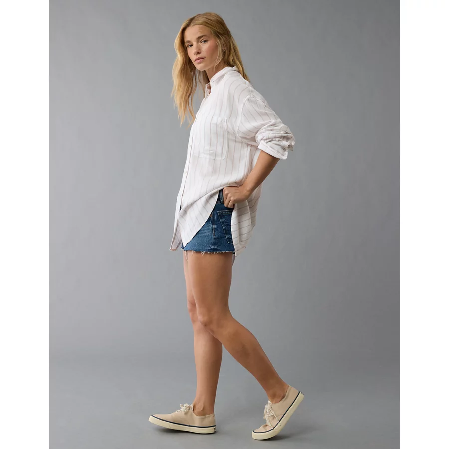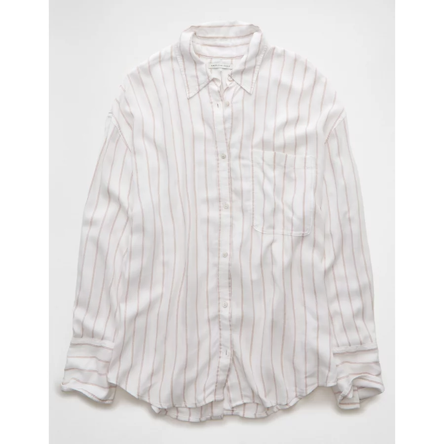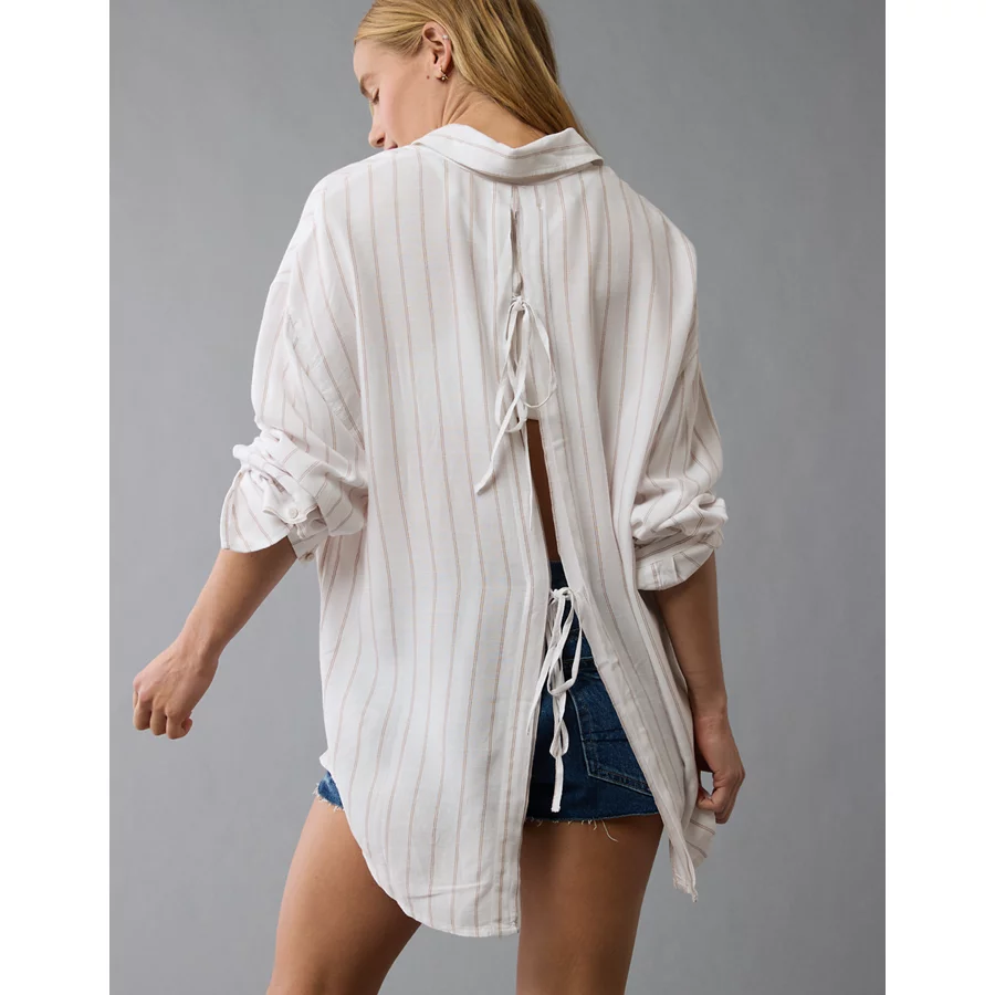 AE Long-Sleeve Tie Back Button-Up Shirt – Beige