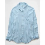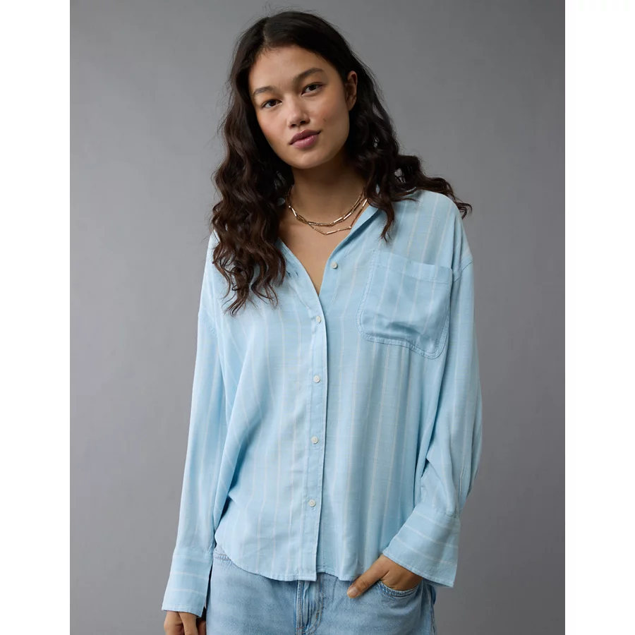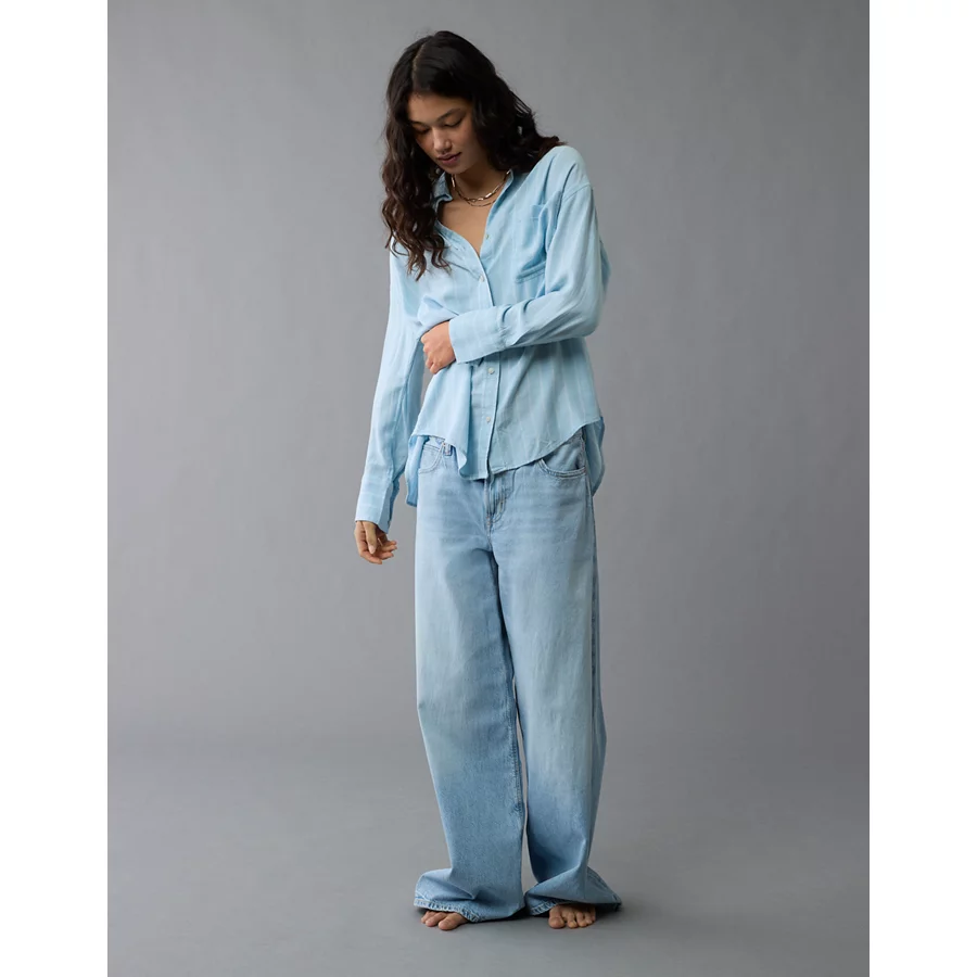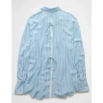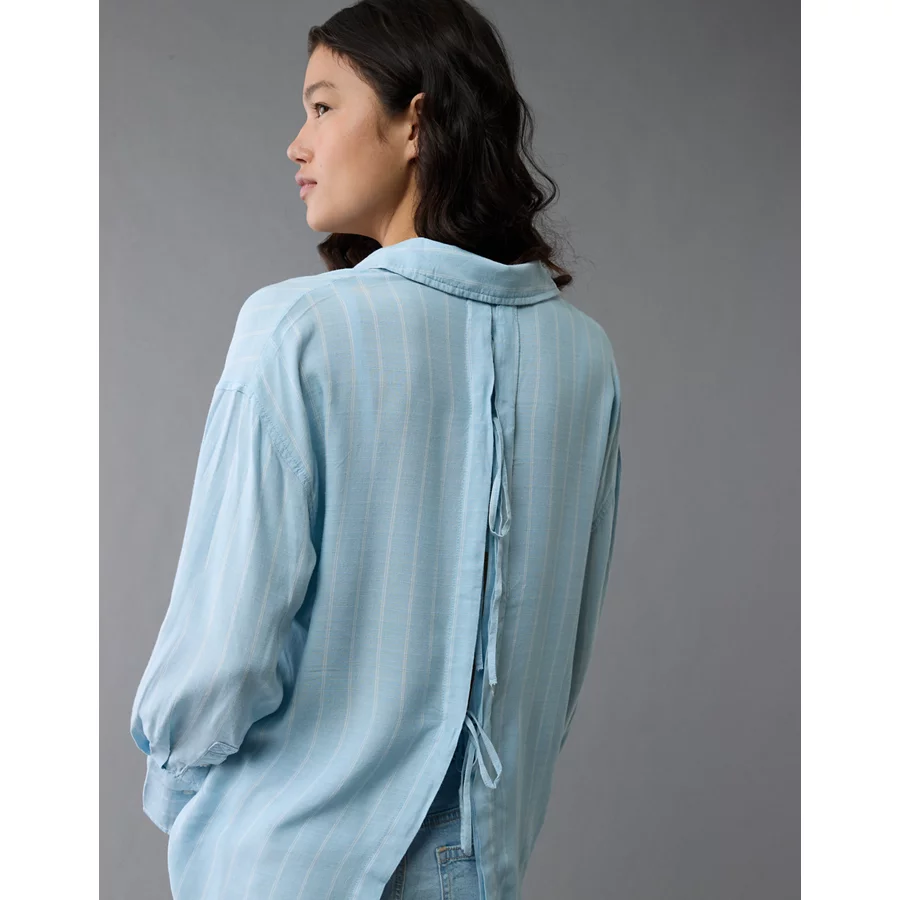 AE Long-Sleeve Tie Back Button-Up Shirt – Light Blue