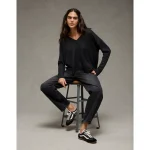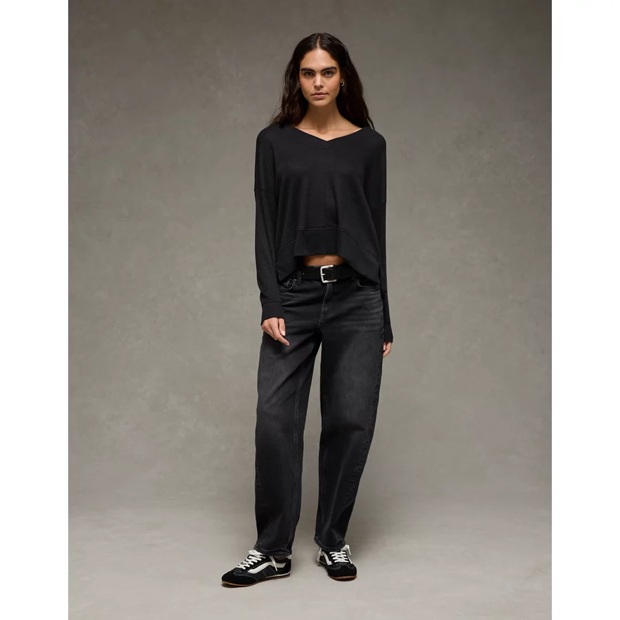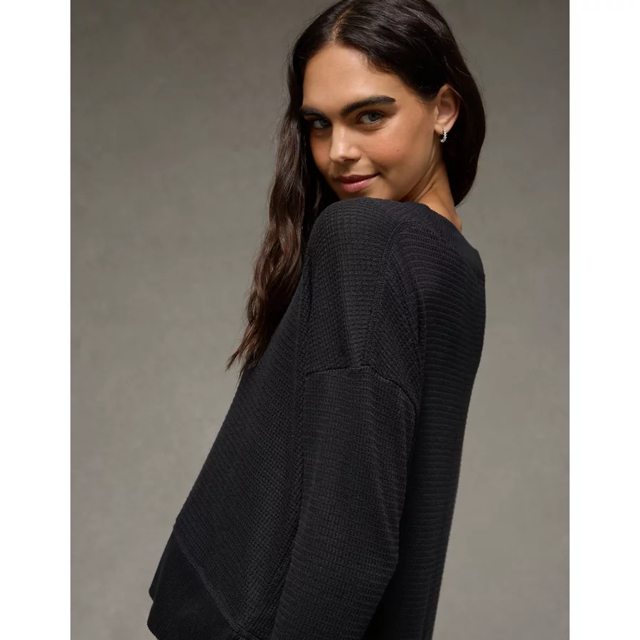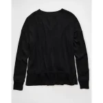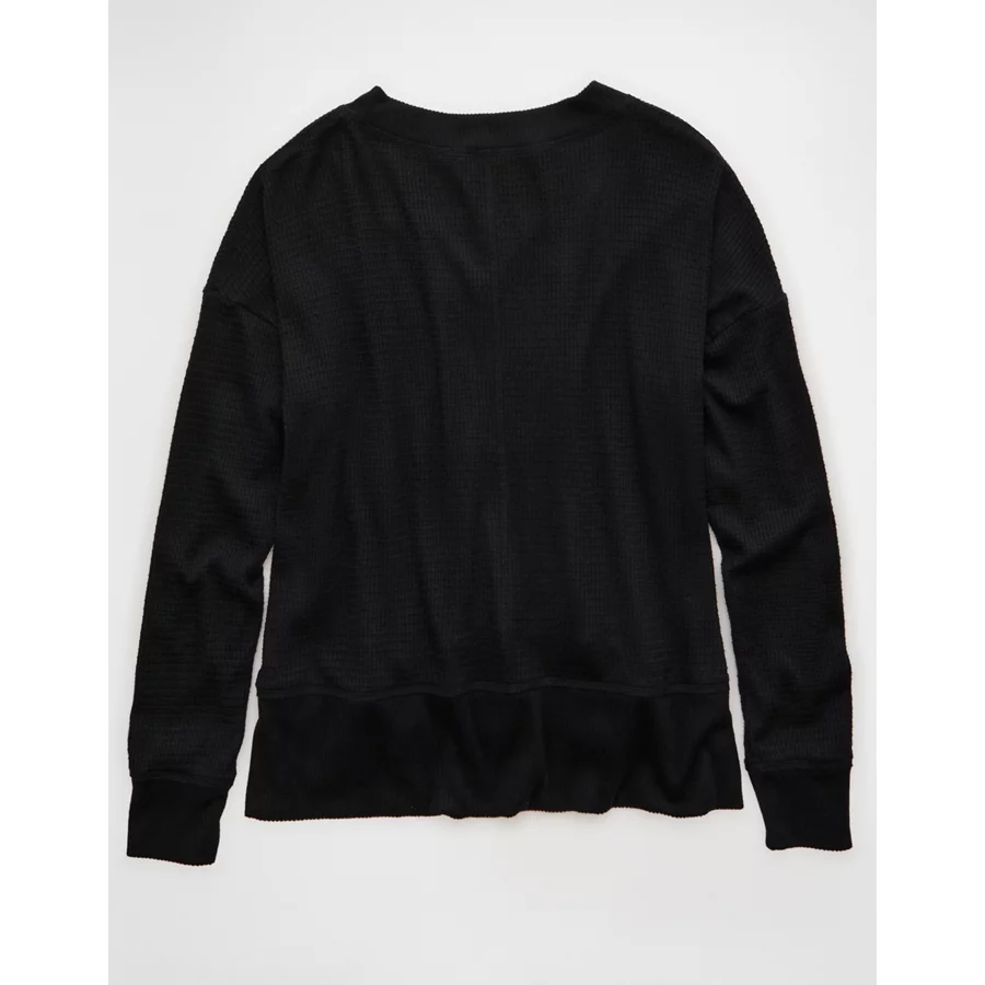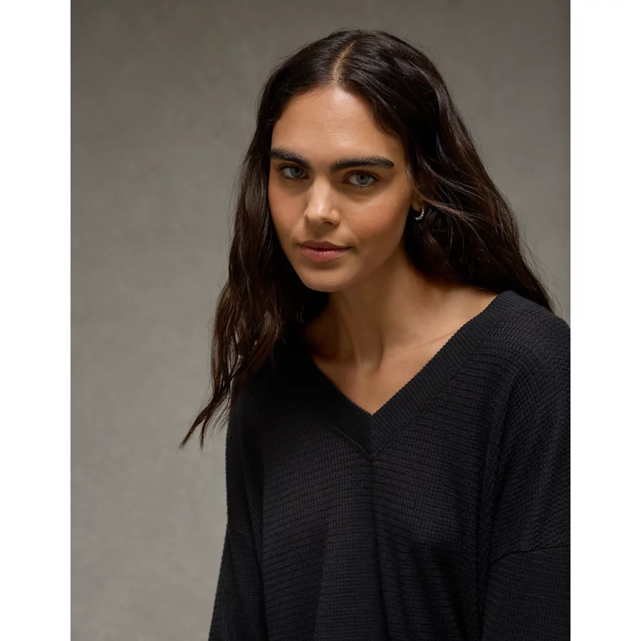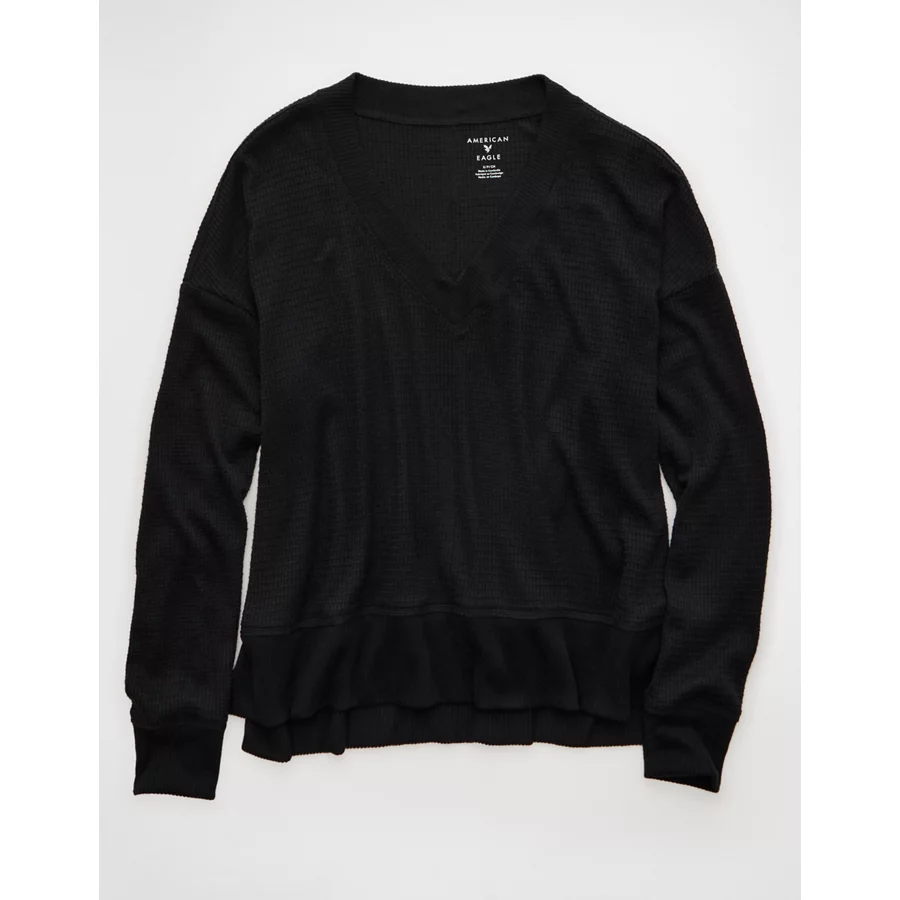 AE Long Sleeve V-Neck Plush T-Shirt – True Black