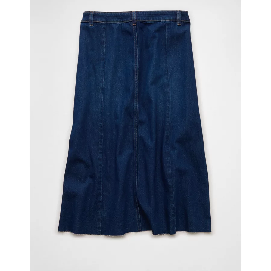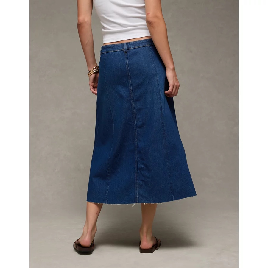 AE Low-Rise A-Line Denim Midi Skirt – Dark Wash