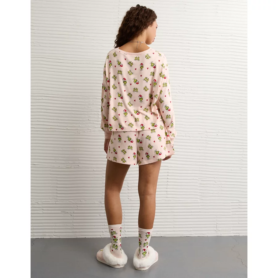 AE Luxe Plush Grinch PJ Set – Pink Note