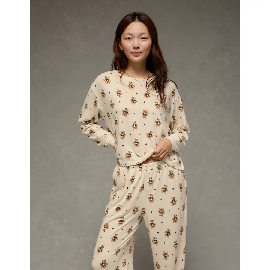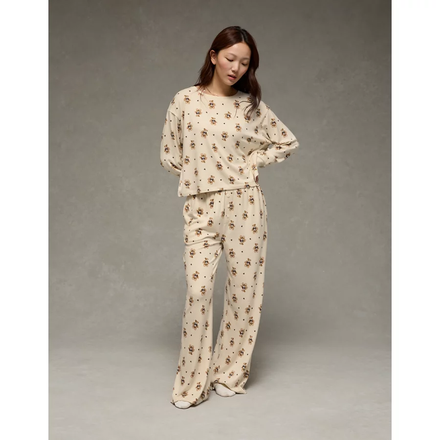 AE Luxe Plush Long-Sleeve & Pant PJ Set – Bone Khaki