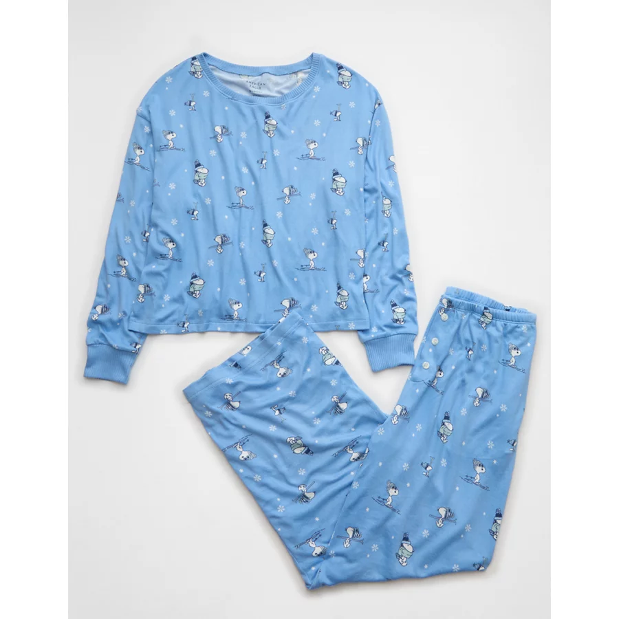 AE Luxe Plush Snoopy Long-Sleeve & Pant PJ Set – Gravity Blue