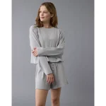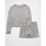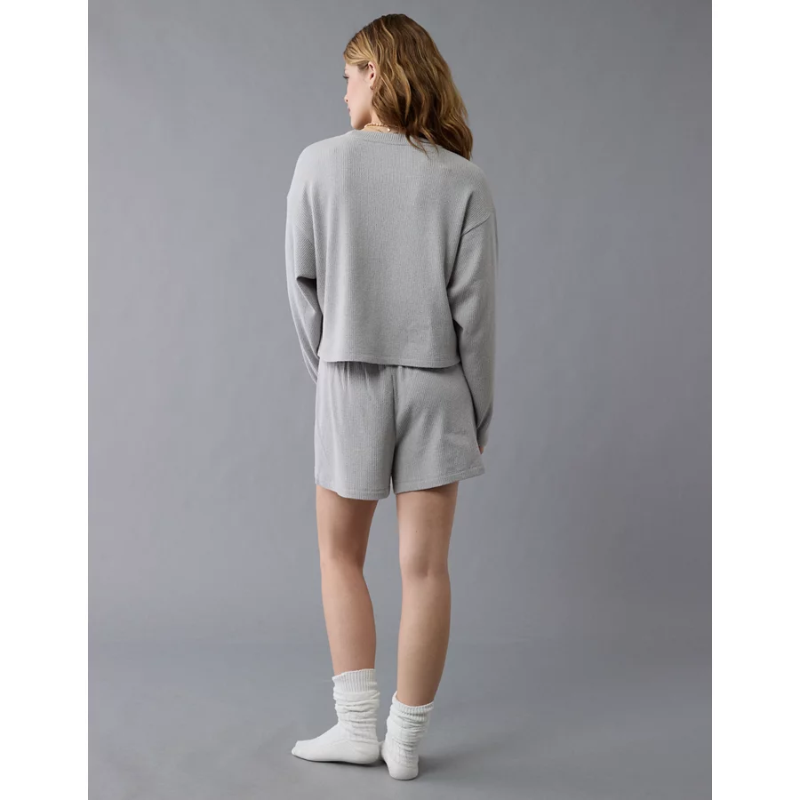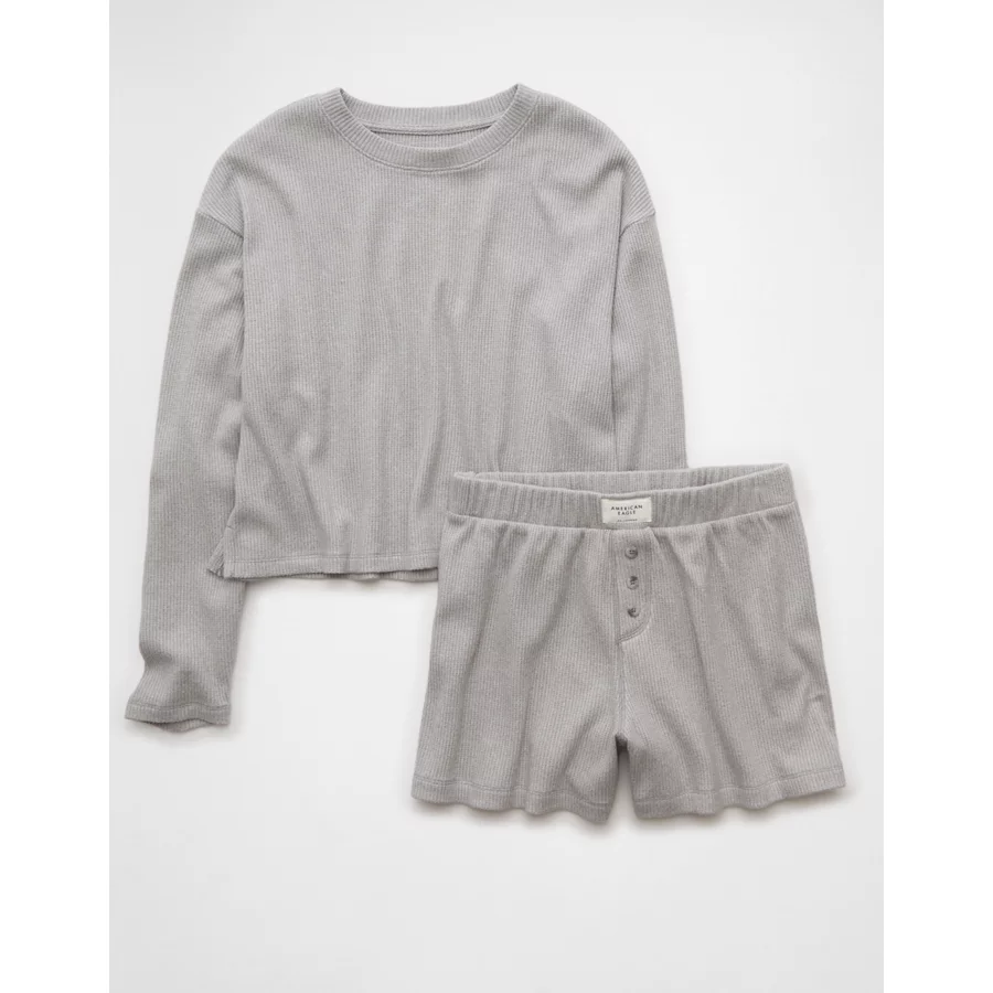 AE Luxe Plush Waffle Tee + Short Lounge Set – Medium Heather Gray