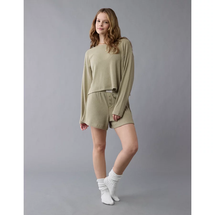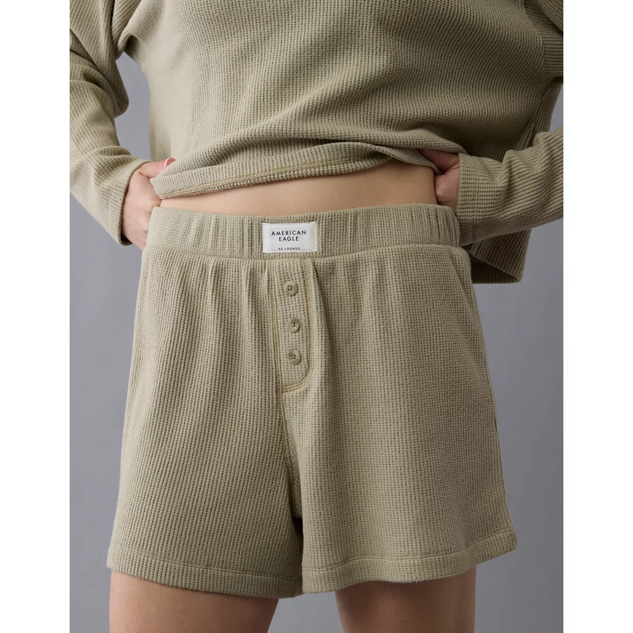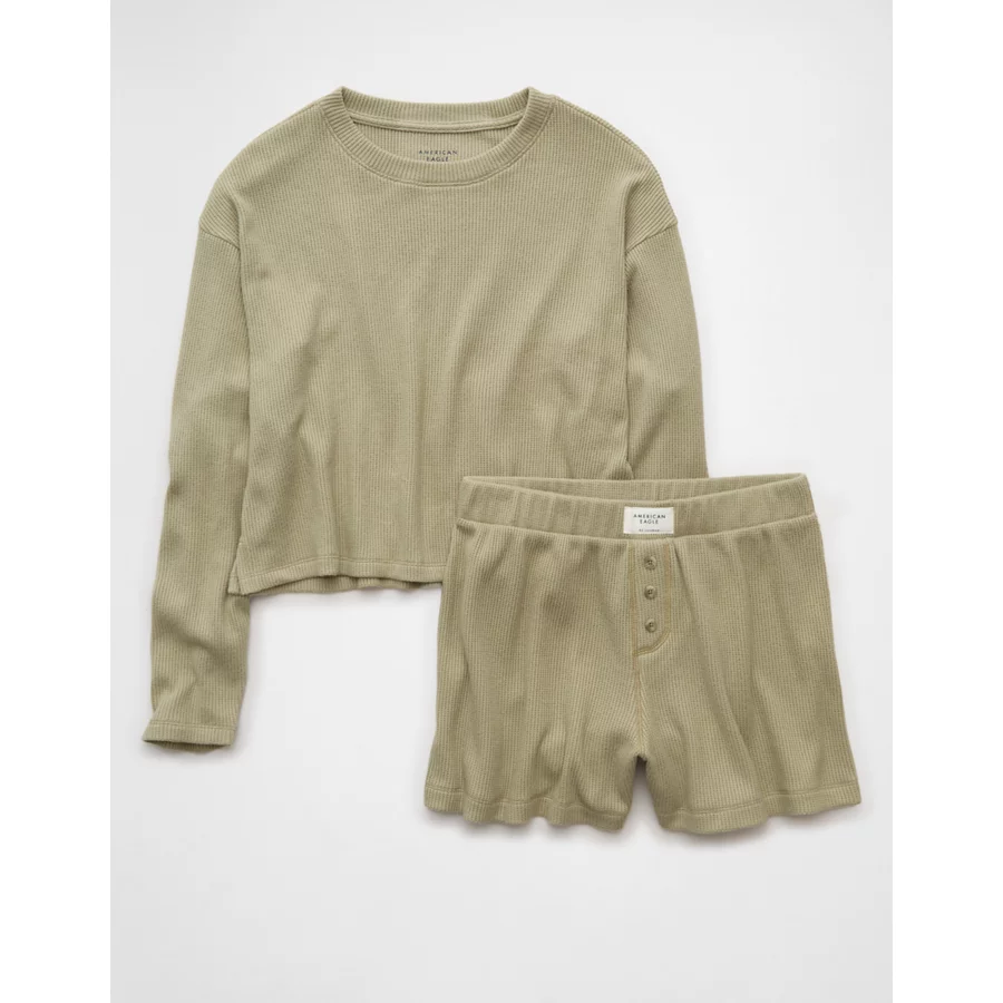 AE Luxe Plush Waffle Tee + Short Lounge Set – Washed Olive