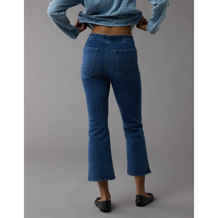 AE Luxe Pull-On High-Waisted Kick Bootcut Crop Jean - Medium Indigo