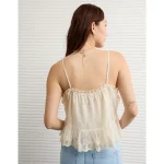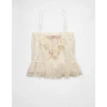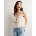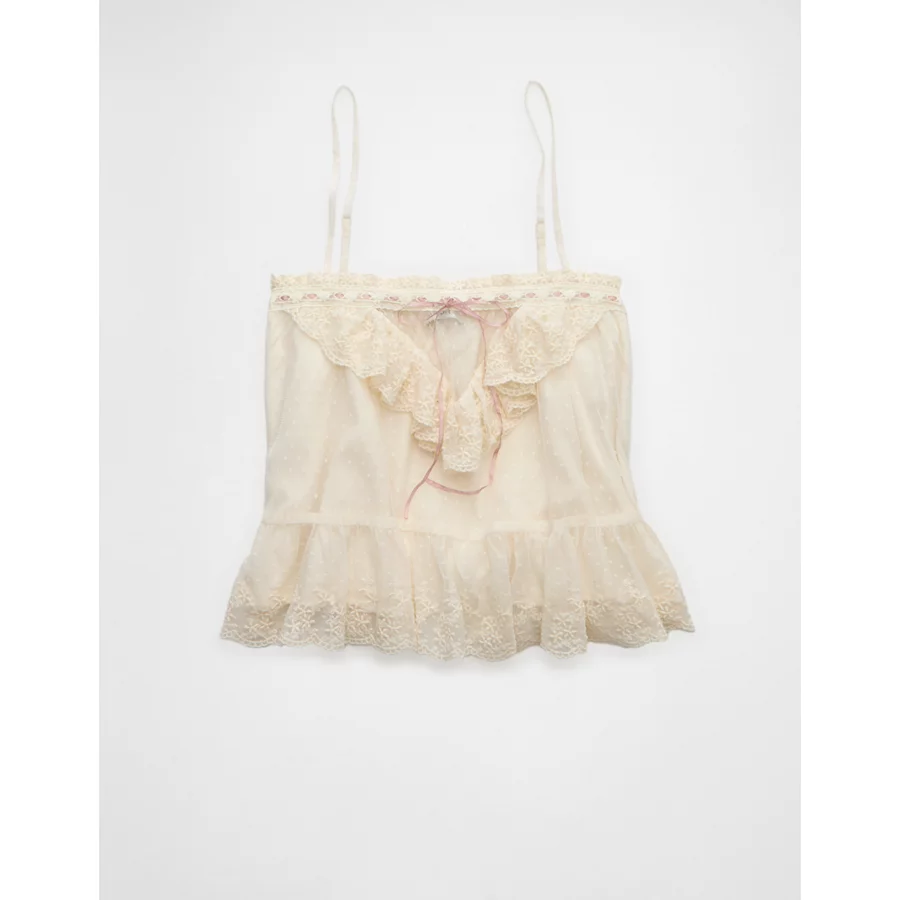 AE Mesh Ruffle Cami – Cream