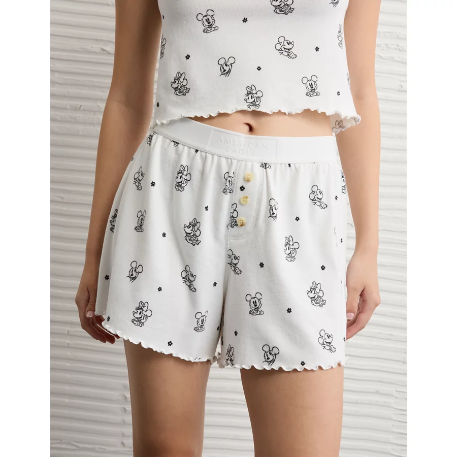 AE Mickey & Minnie Mouse Plush Baby Tee PJ Set – White