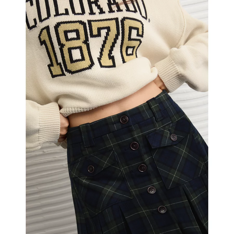 AE Mid-Rise Pleated Skirt - Brown