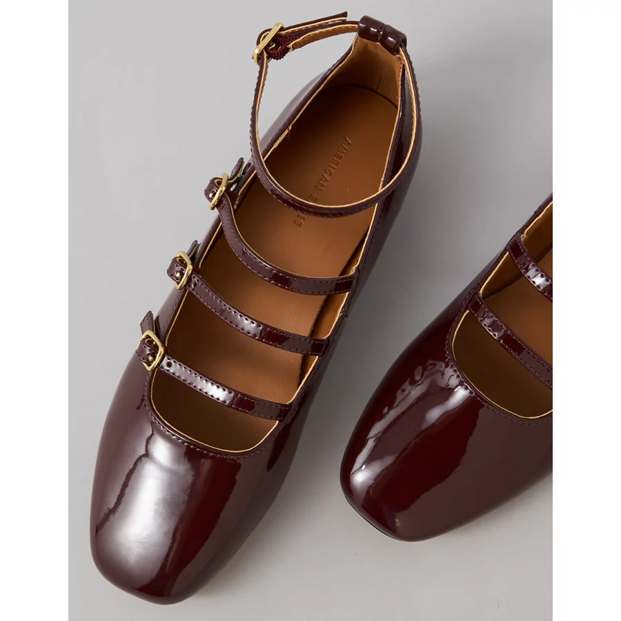 AE Multi-Strap Mary Jane Flat – Burgundy
