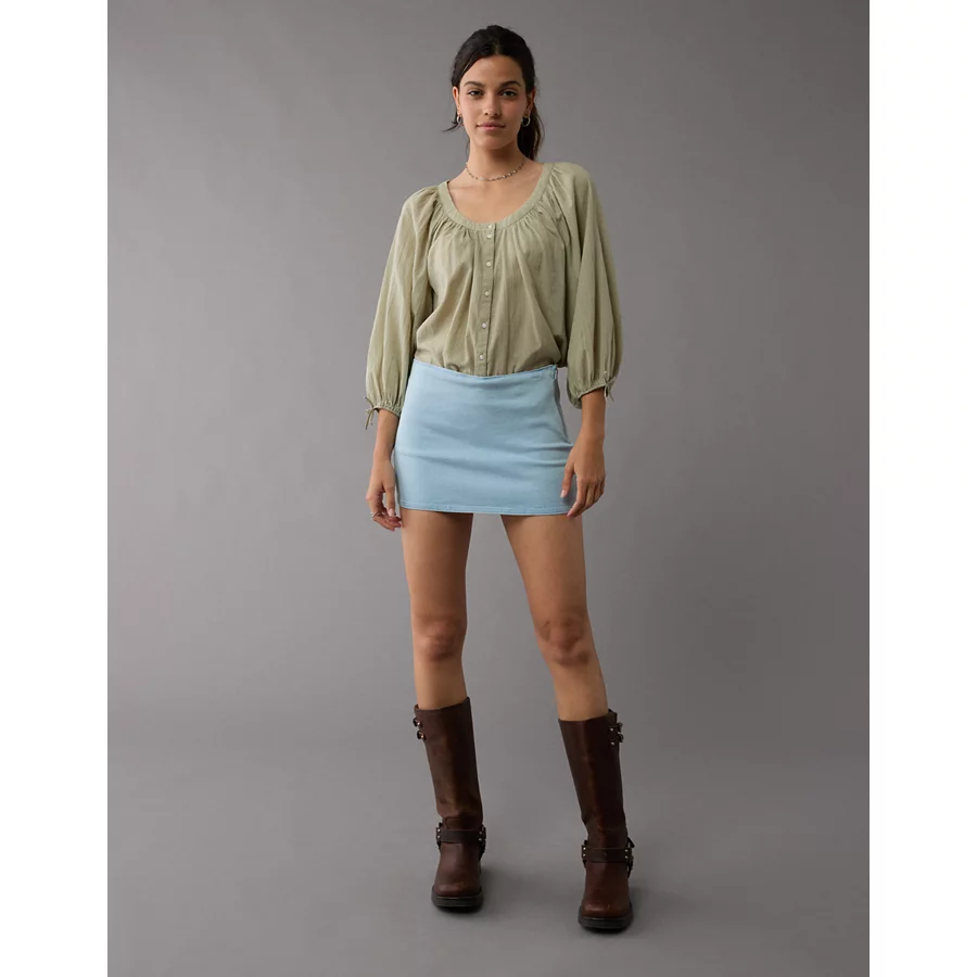 AE Next Level Low-Rise Denim Micro Skort – Light Wash