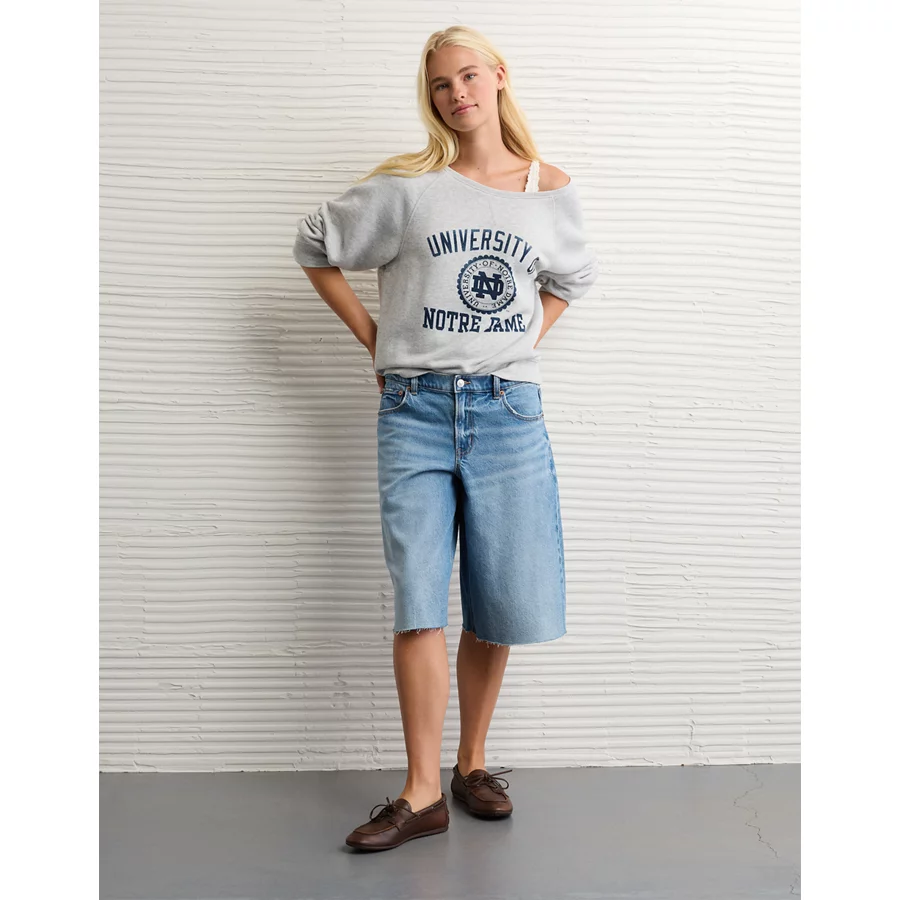 AE Notre Dame Fighting Irish Graphic Off The Shoulder Sweatshirt – Medium Heather Gray