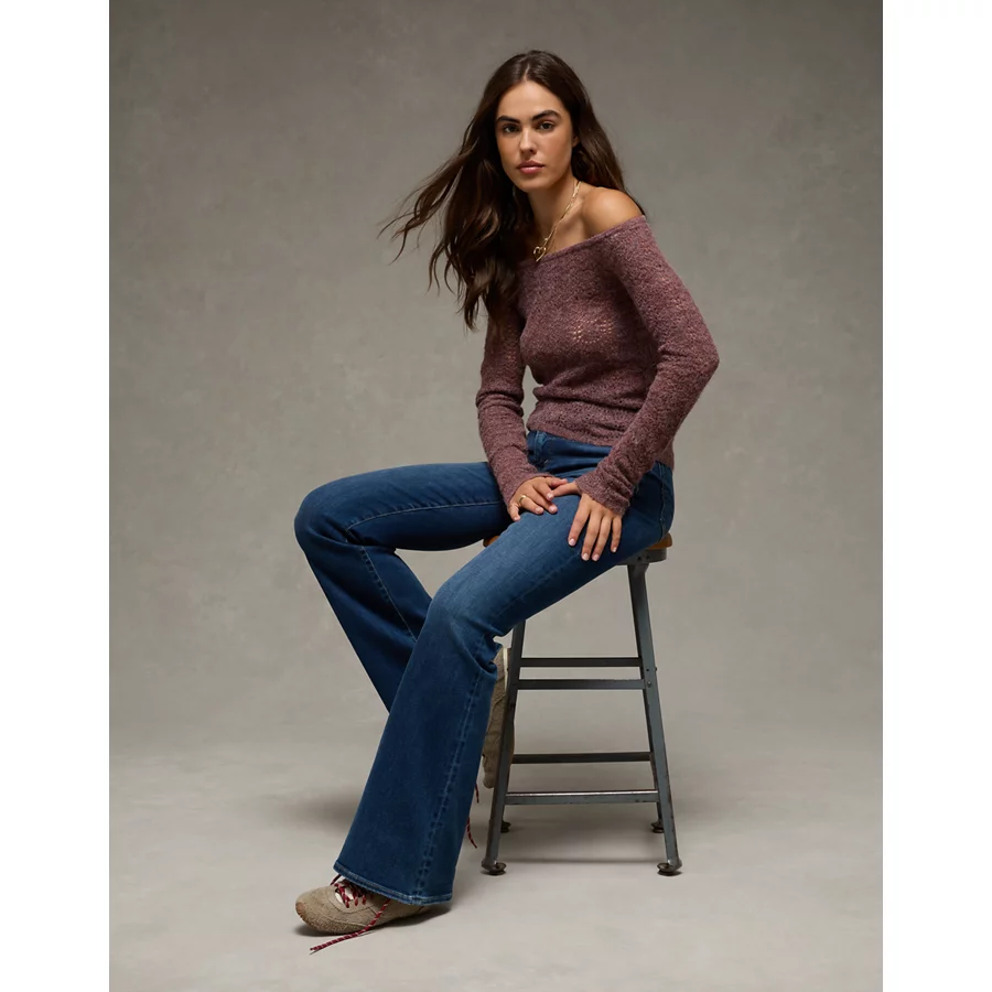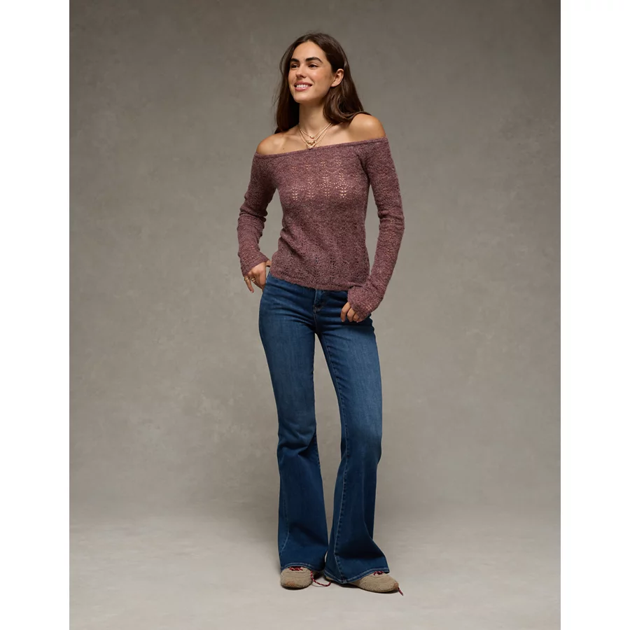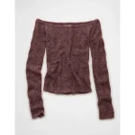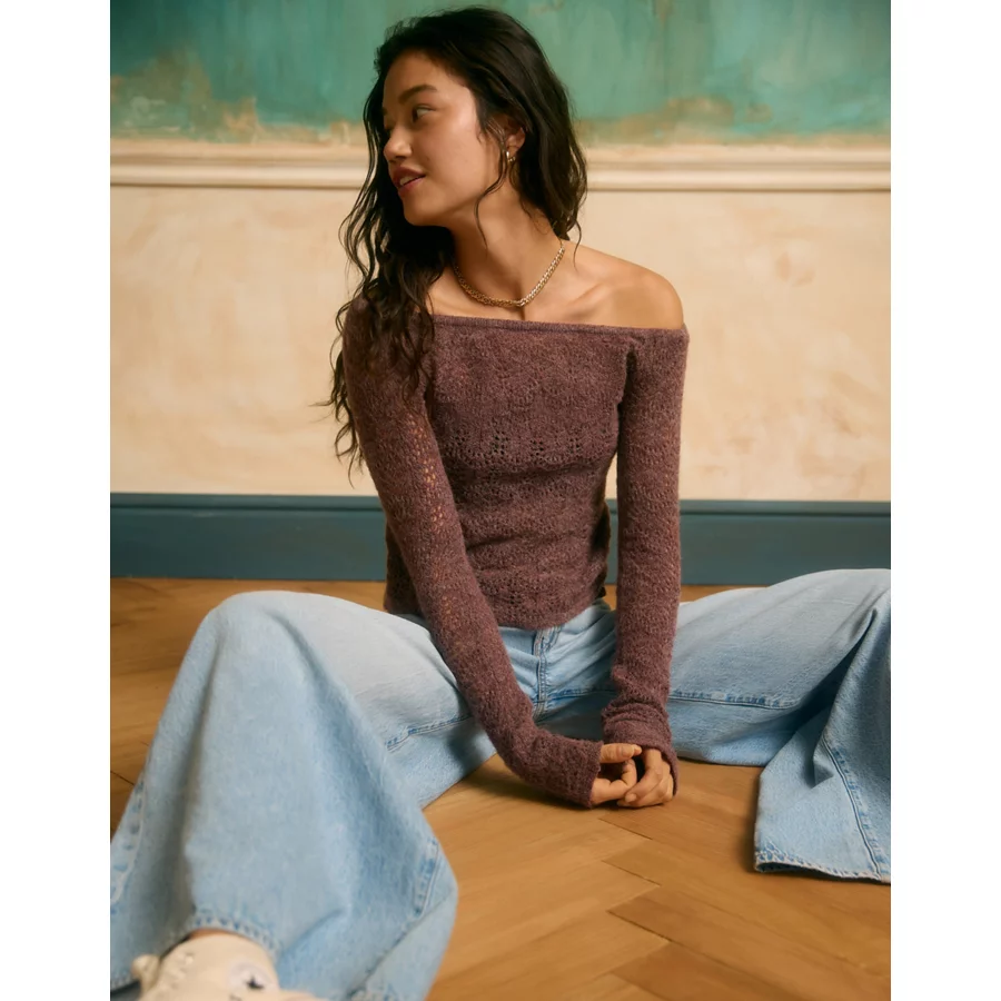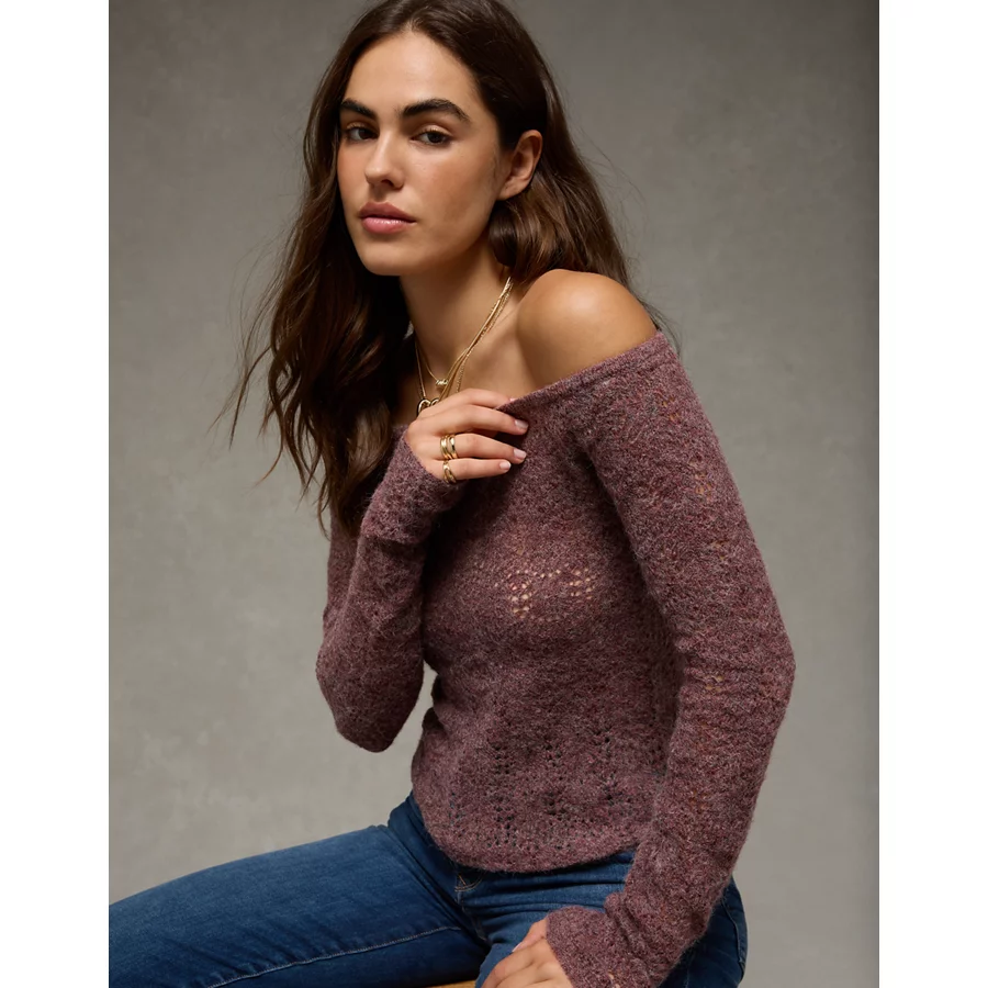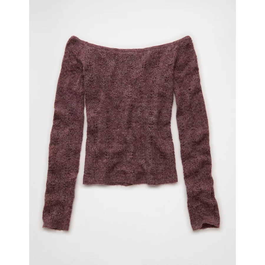 AE Off-the-Shoulder Sweater Mini Dress - Brown