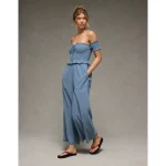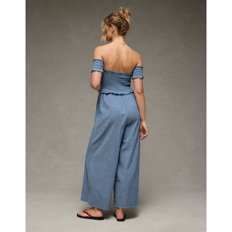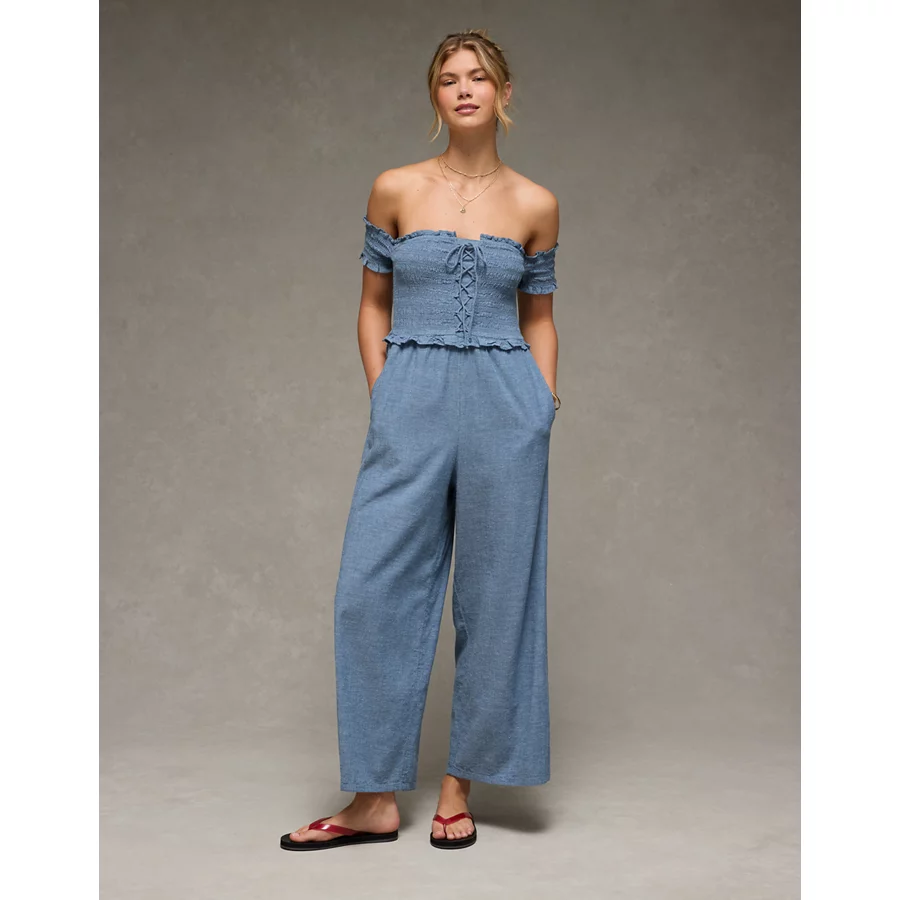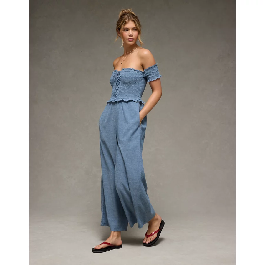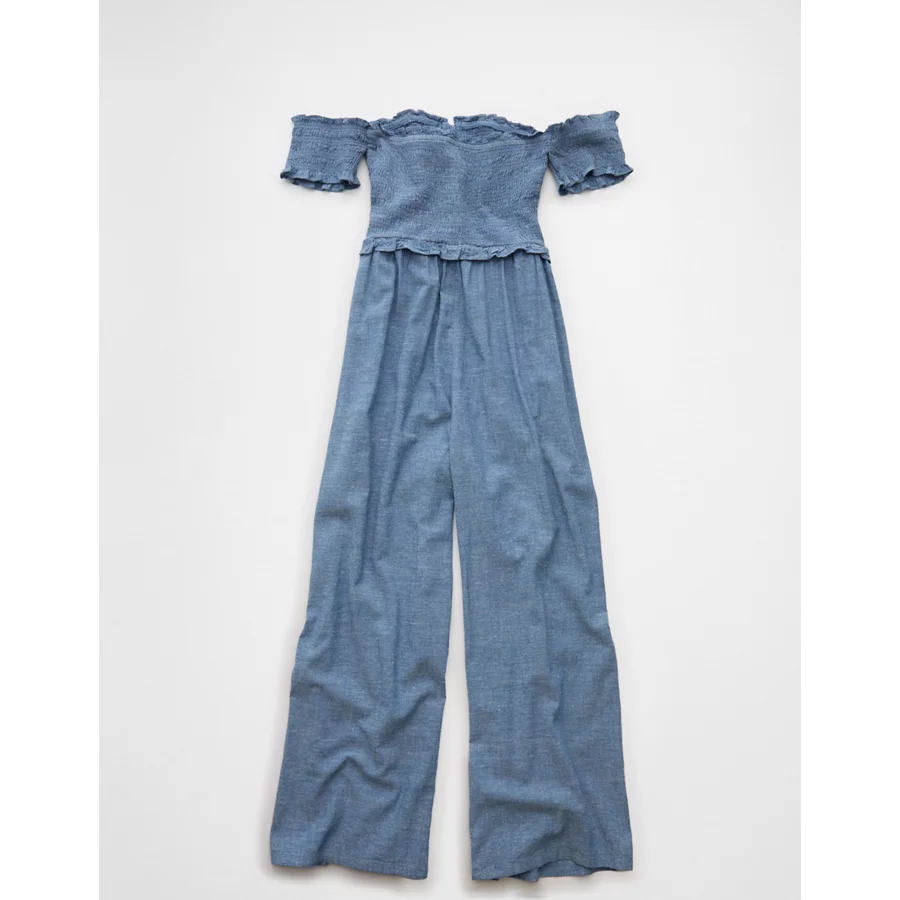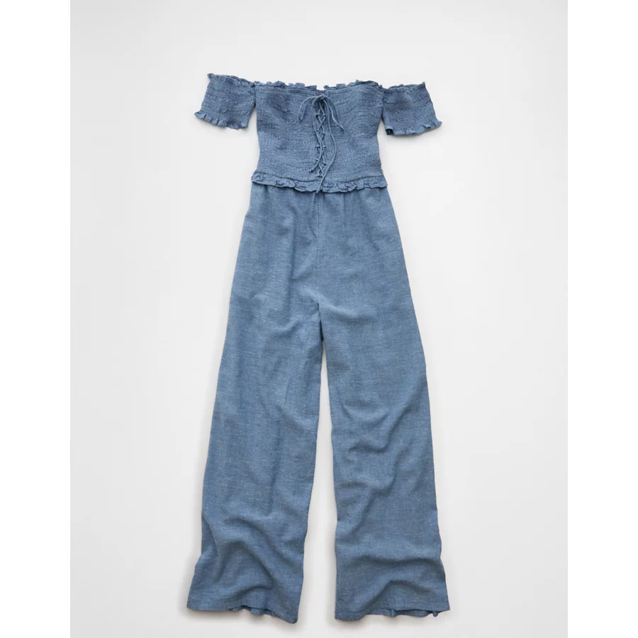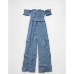 AE Off The Shoulder Tie Front Jumpsuit – Chambray Blue