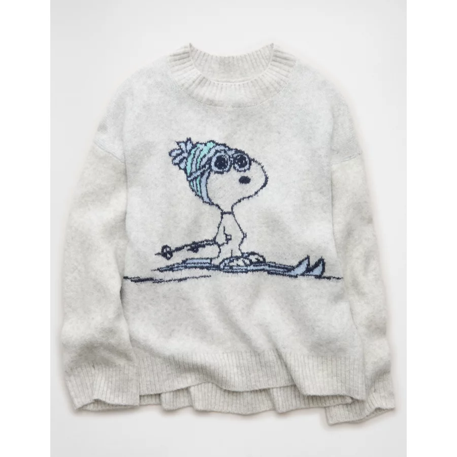 AE Oversized Snoopy Graphic Sweater – Grey