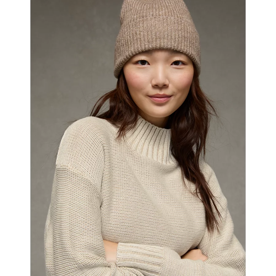 AE Oversized Turtleneck Sweater Mini Dress – Cream