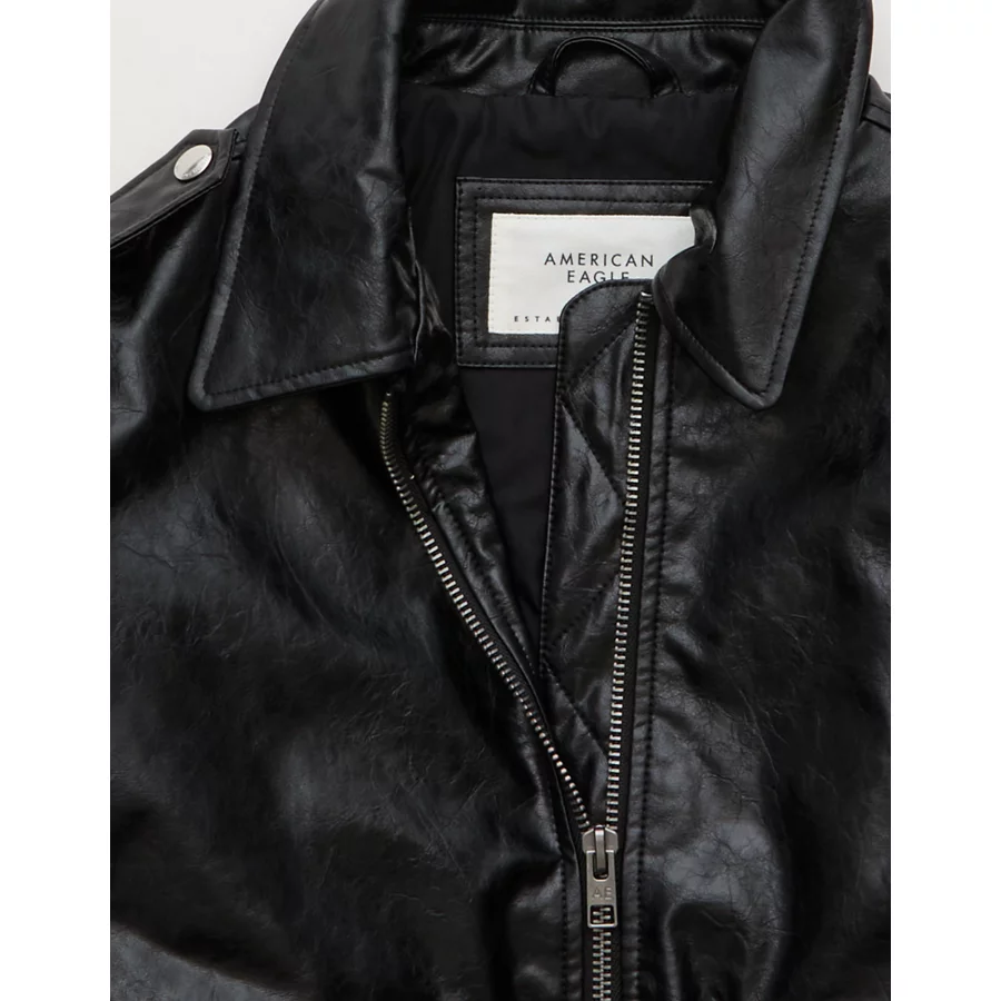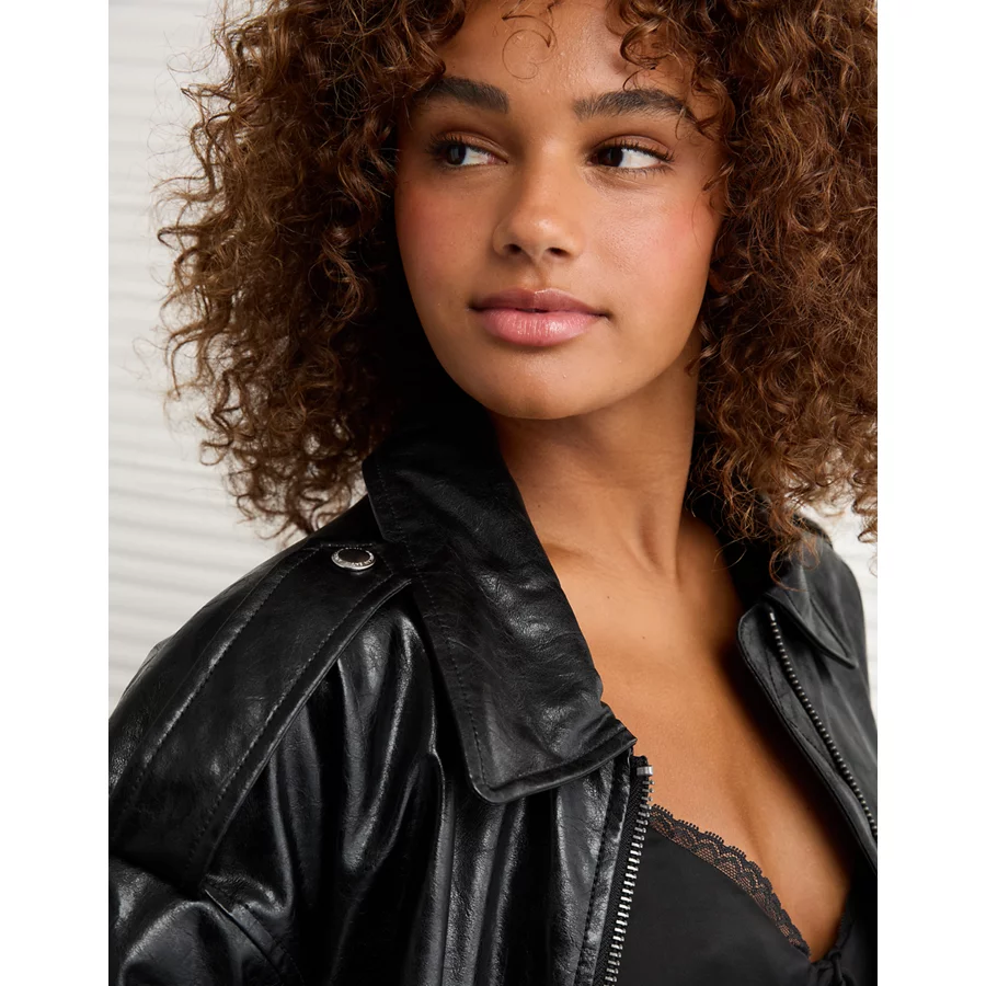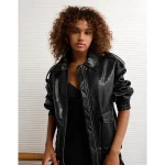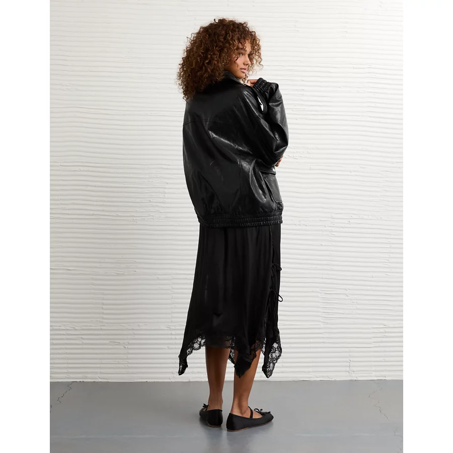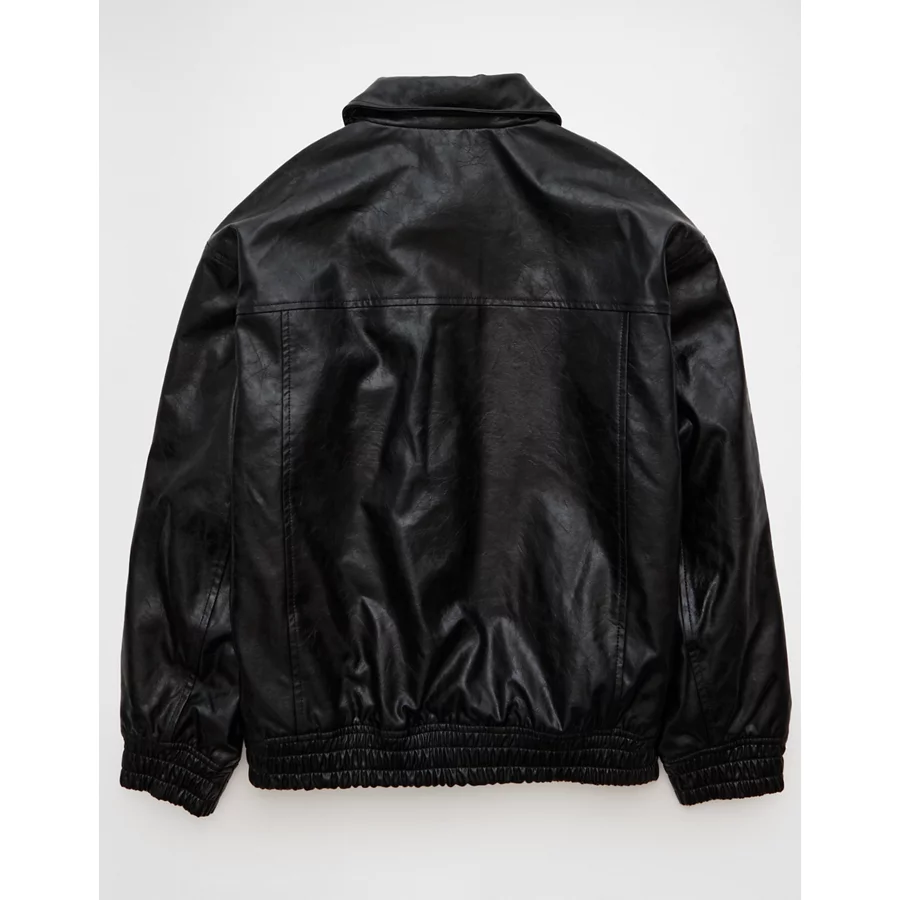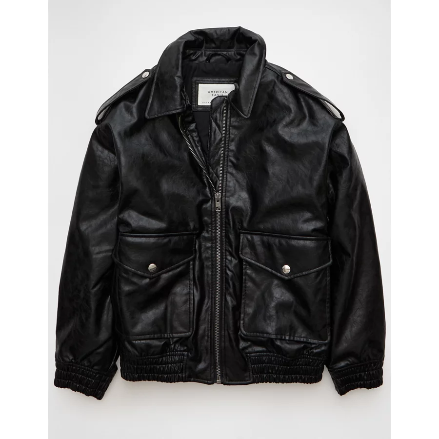 AE Oversized Vegan Leather Bomber Jacket – Black