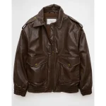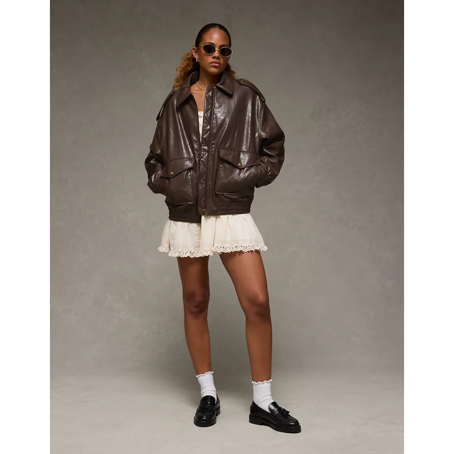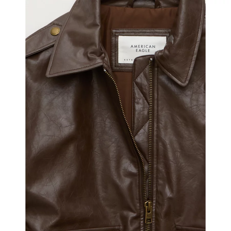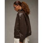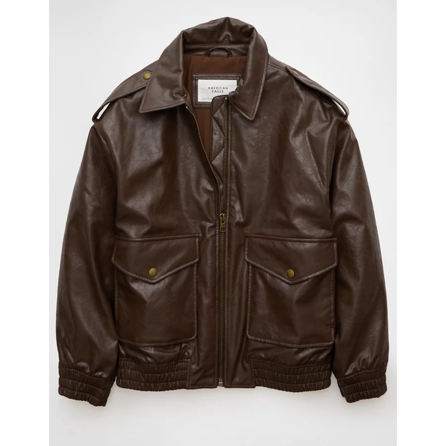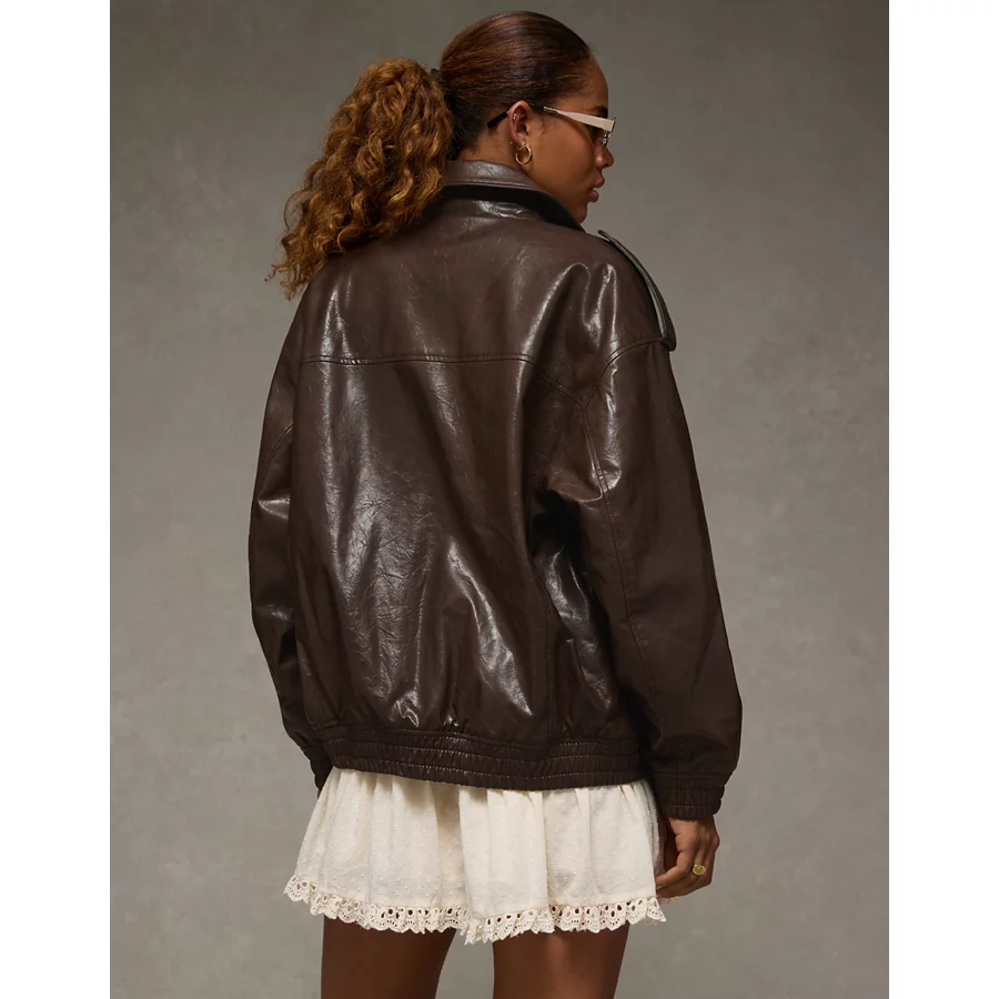 AE Oversized Vegan Leather Bomber Jacket – Brown
