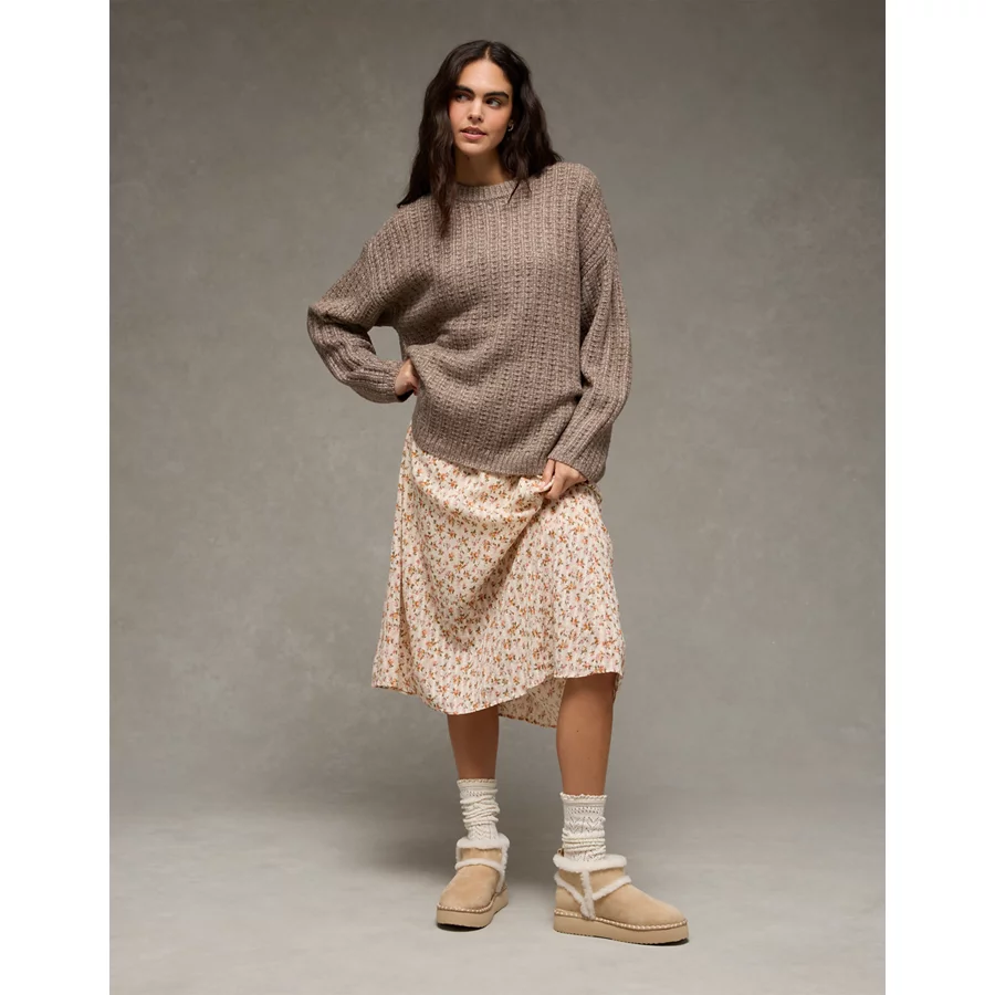 AE Oversized Waffle Sweater – Dark Brown