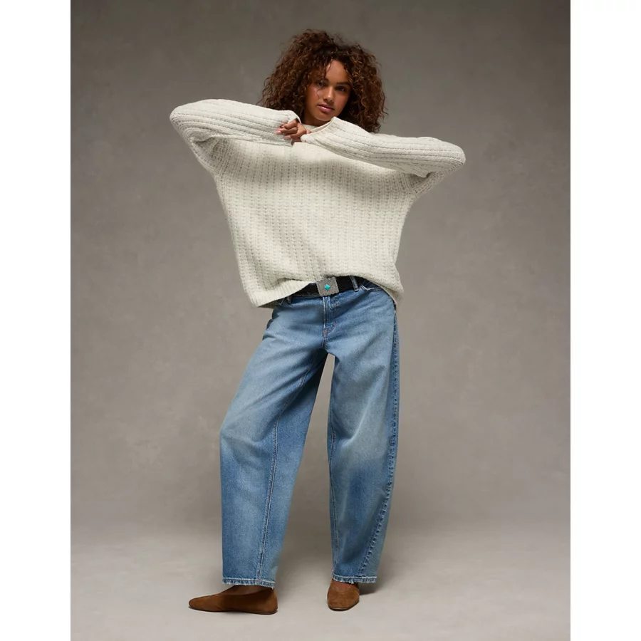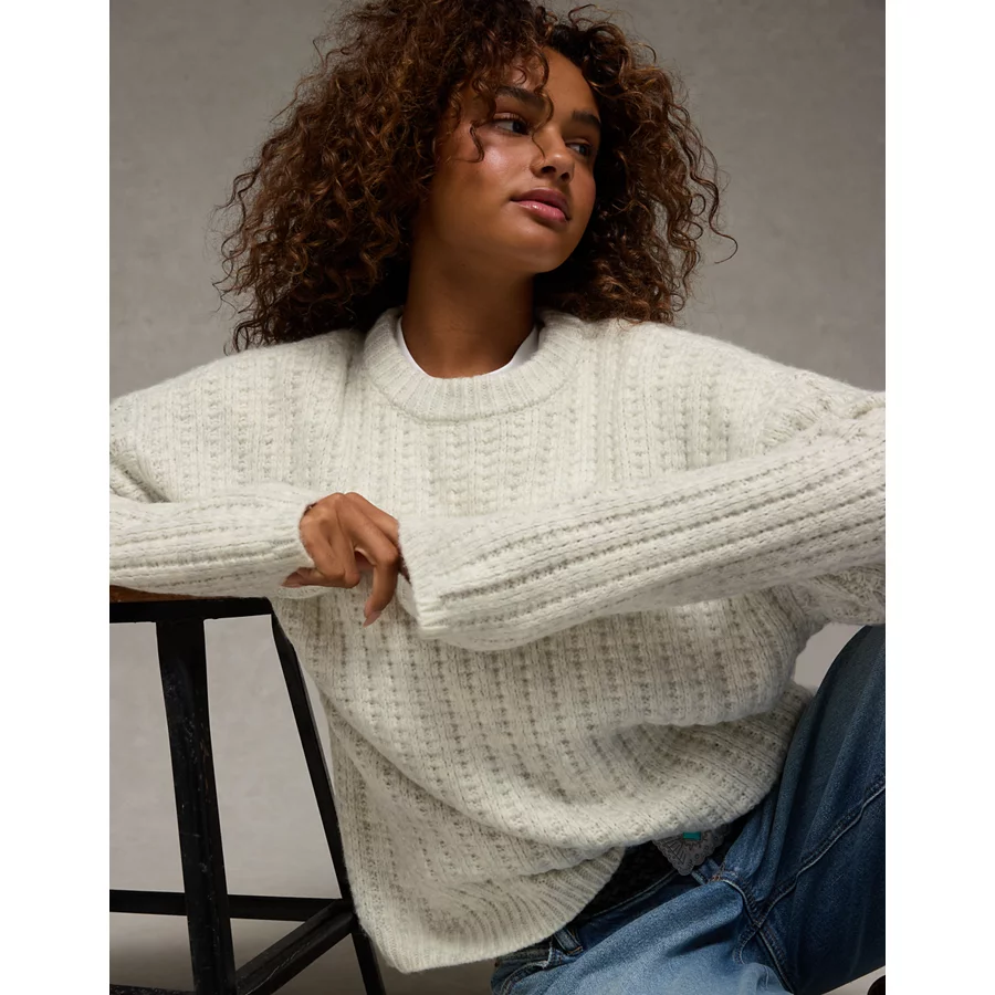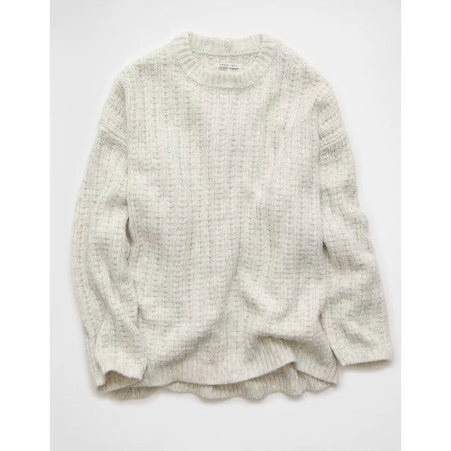 AE Oversized Waffle Sweater – Light Gray