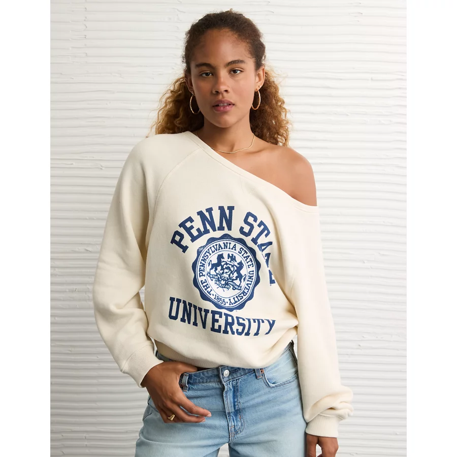 AE Penn State Nittany Lions Graphic Off The Shoulder Sweatshirt – Natural White