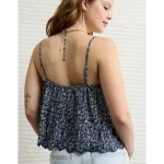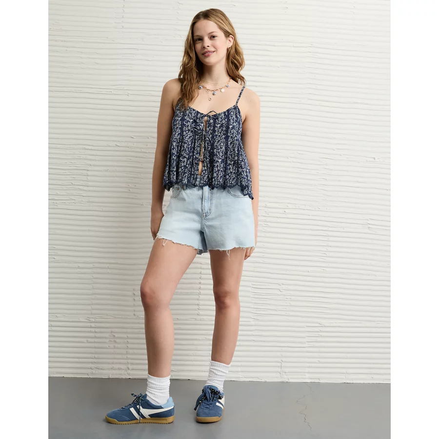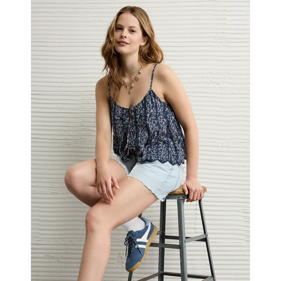 AE Pintuck Tie Front Cami – Navy