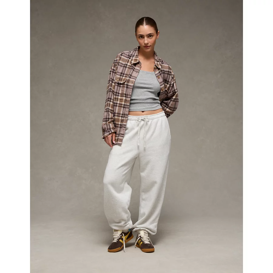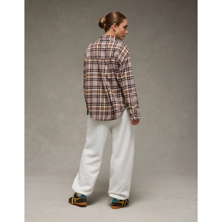AE Plaid Button-Up Shirt - Grey