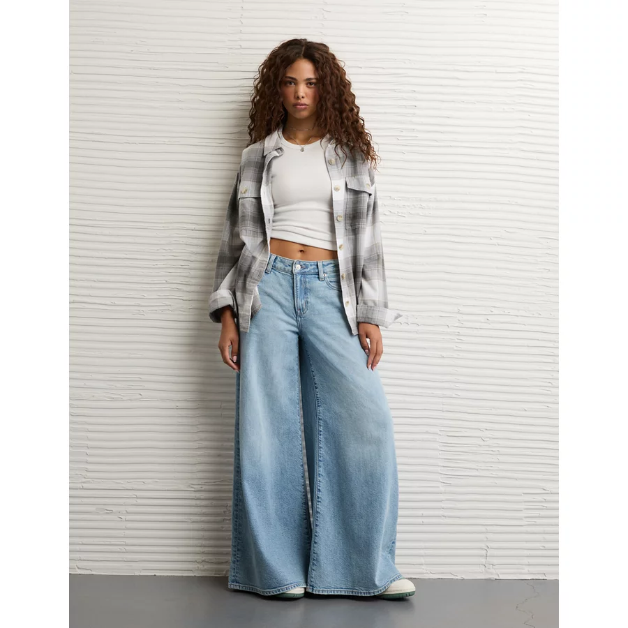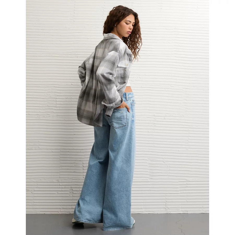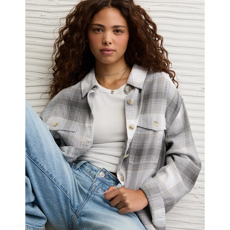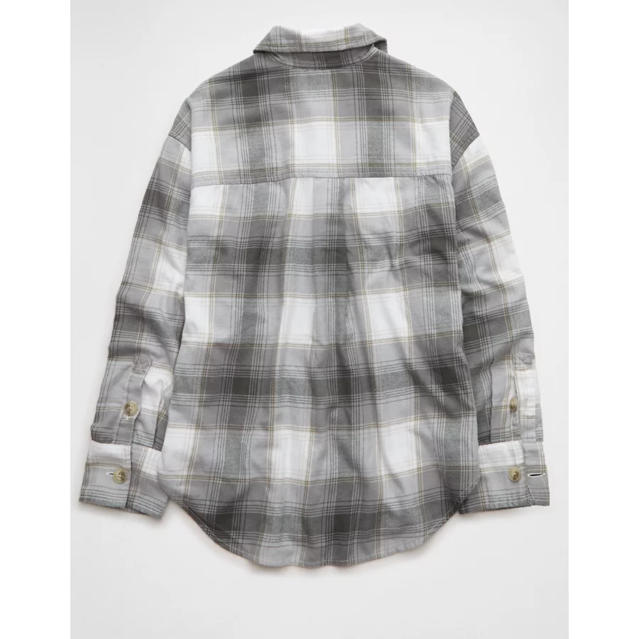 AE Plaid Button-Up Shirt - Grey