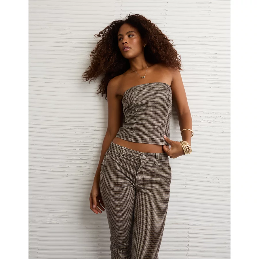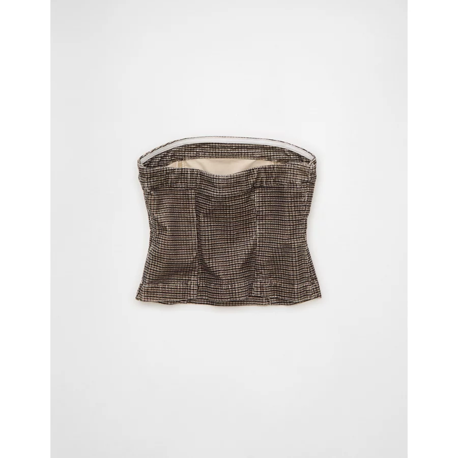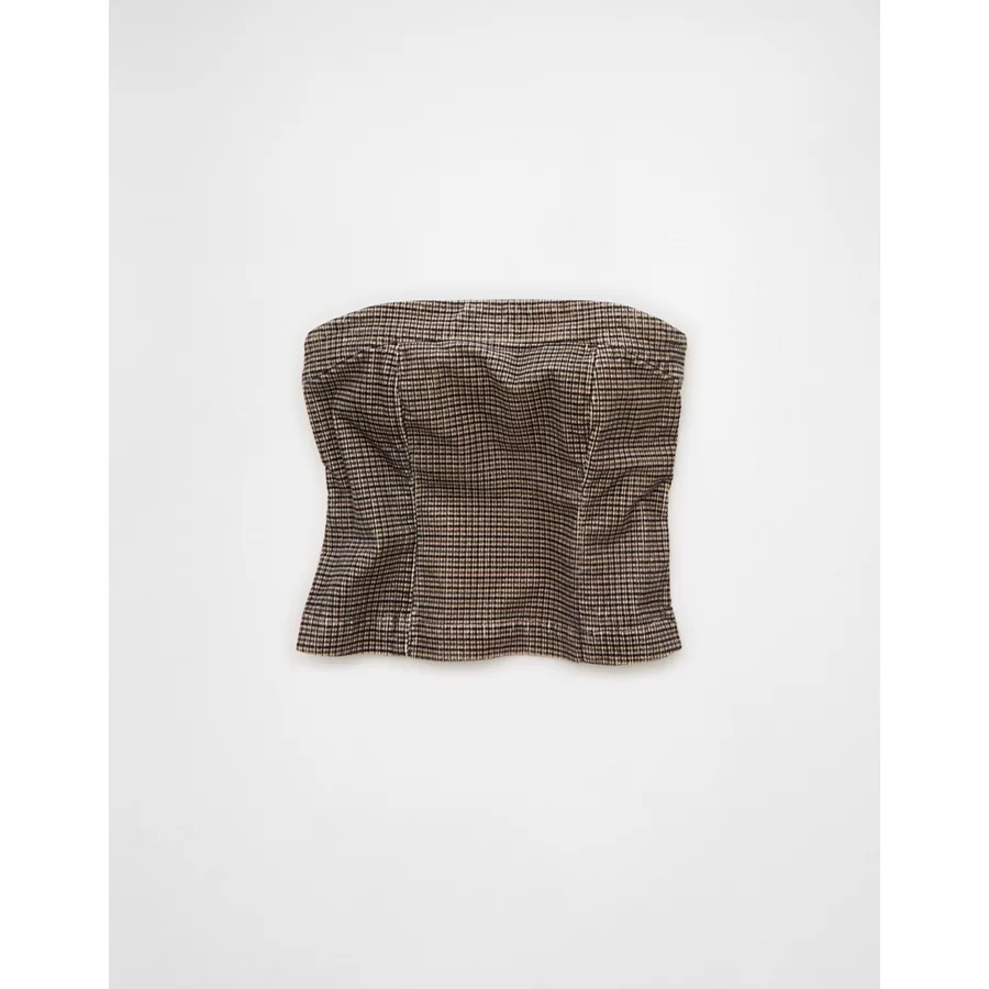 AE Plaid Corduroy Tube Top – Cream