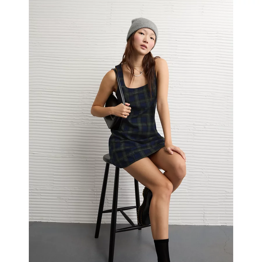 AE Plaid It Knit Mini Dress – Navy