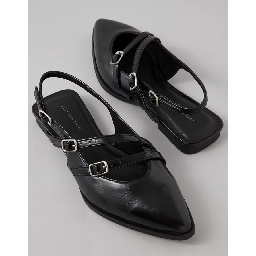 AE Pointed-Toe Flat – Black