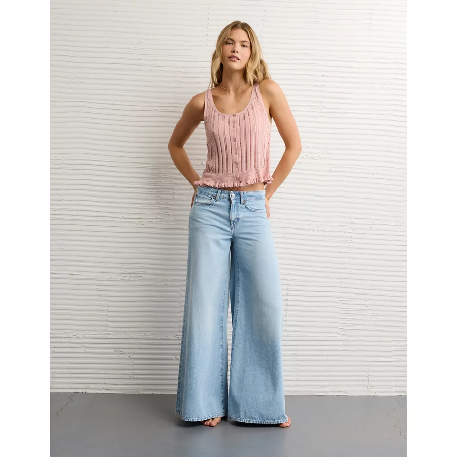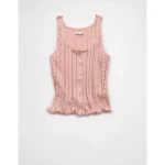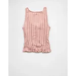 AE Pointelle Peplum Sweater Tank Top – Light Pink