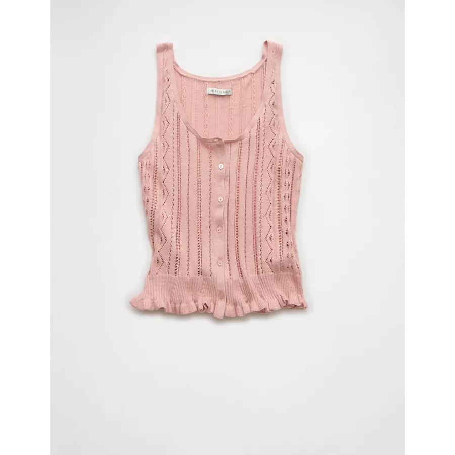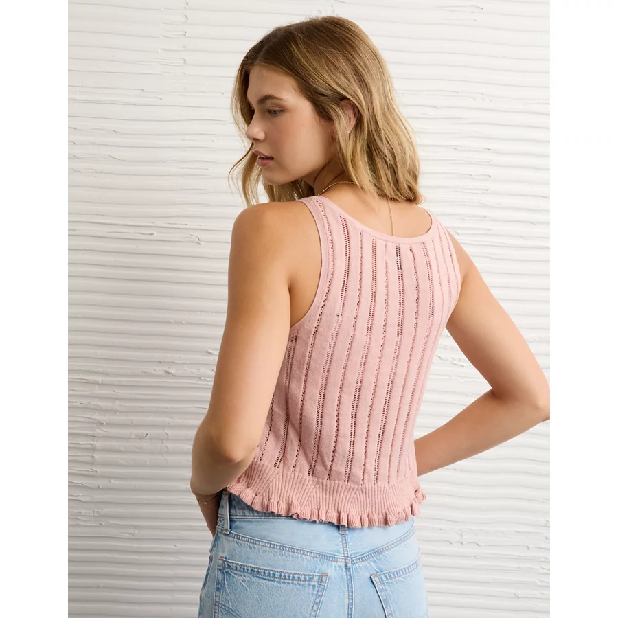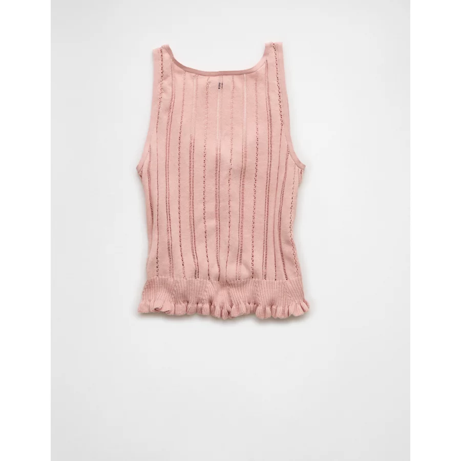 AE Pointelle Peplum Sweater Tank Top - Pink