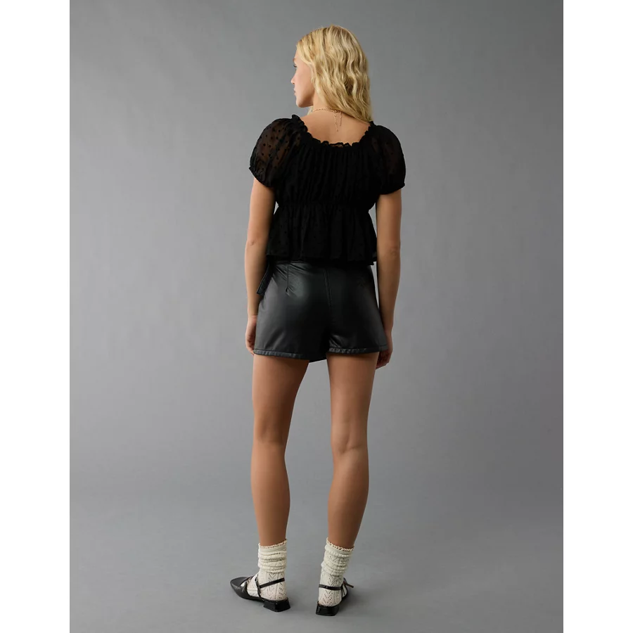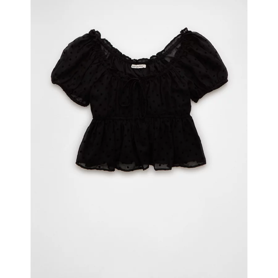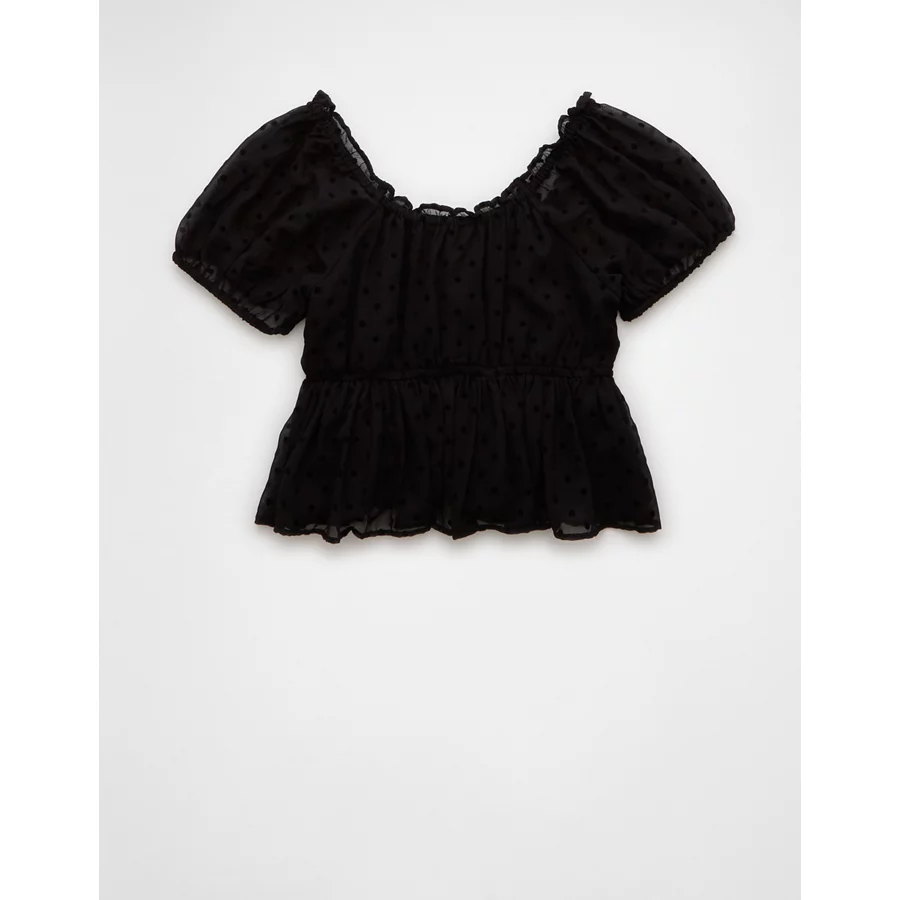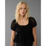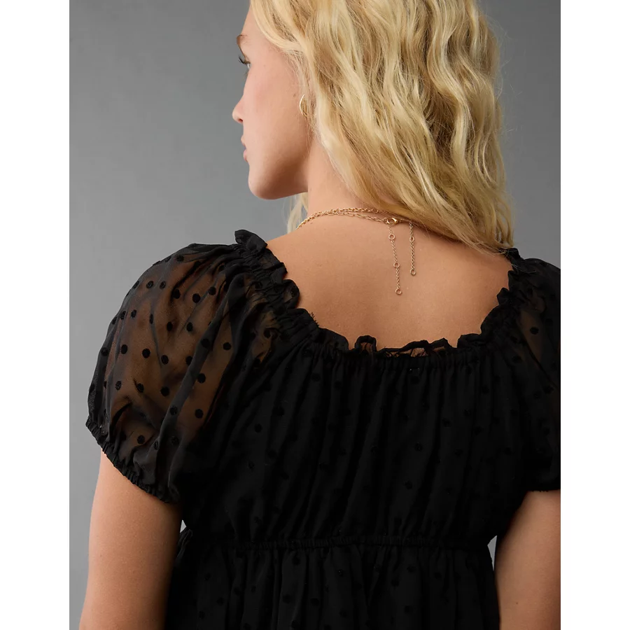 AE Pointelle Puff Sleeve Mini Dress - Black