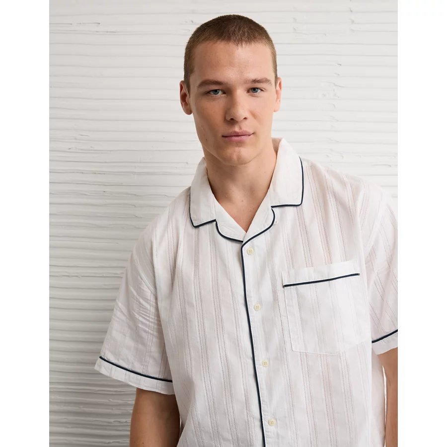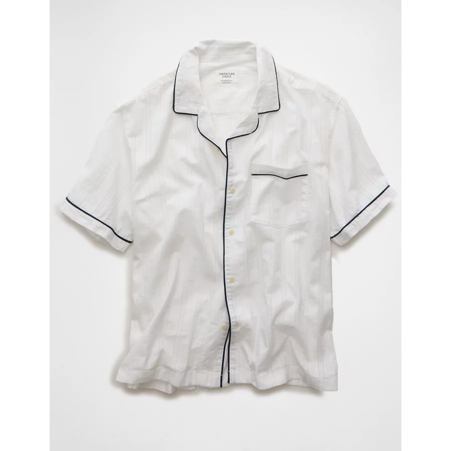 Super soft jersey with added stretchPolo collar with button placketAE 24/7 logoThis is Real Good: Made with the planet in