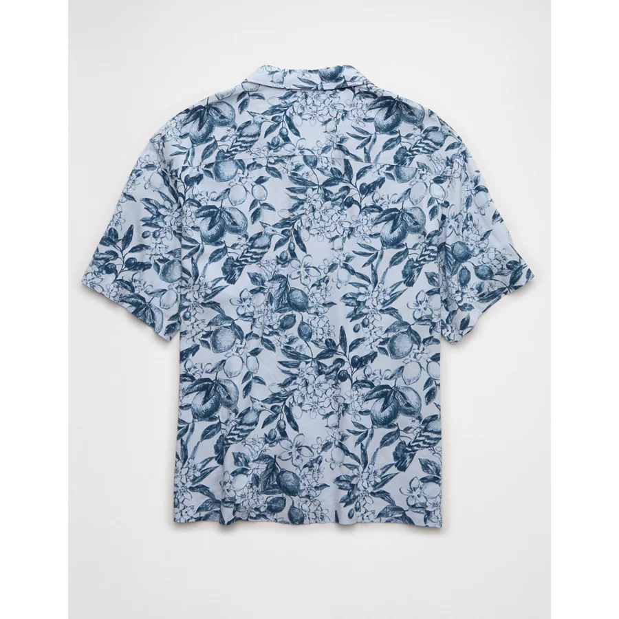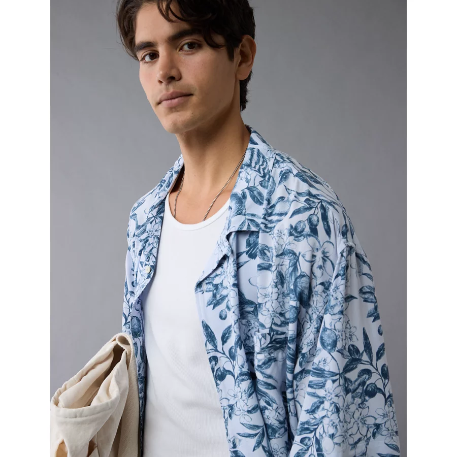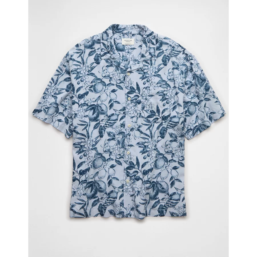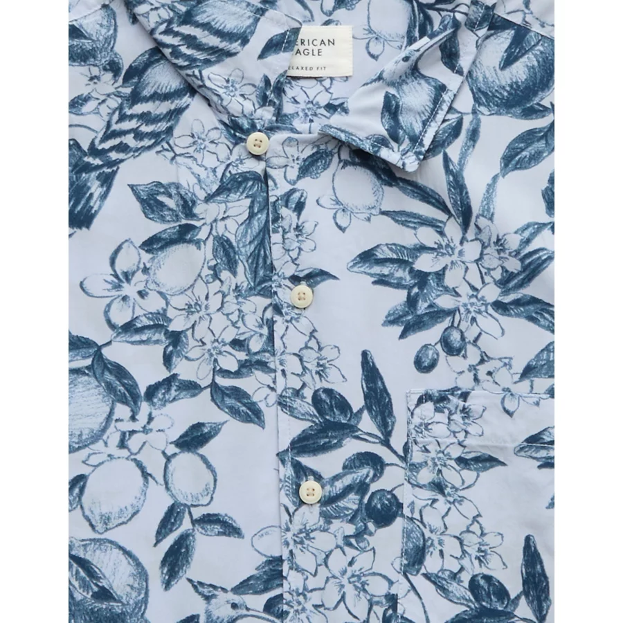 AE Poolside Floral Button-Up Shirt – Blue