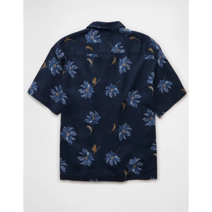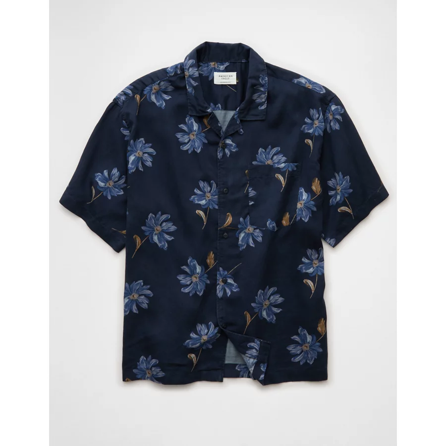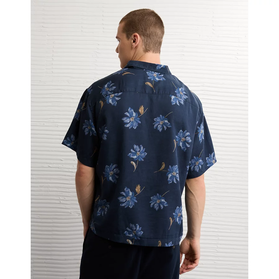 AE Poolside Floral Button-Up Shirt – Blue