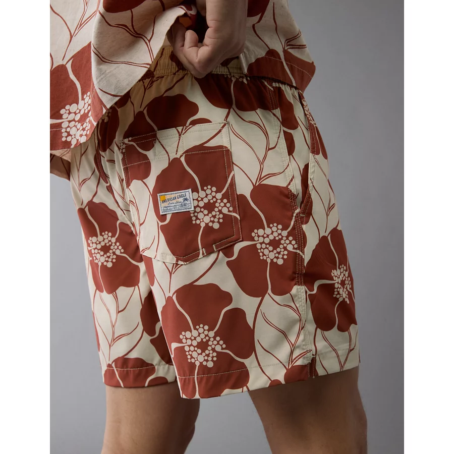 Versatile bi-stretch nylon fabric for high performanceElastic waistSide seam pockets 88% Nylon, 12% SpandexMachine washImported 6 inseamHits mid-thigh