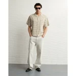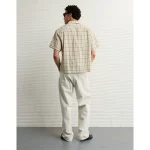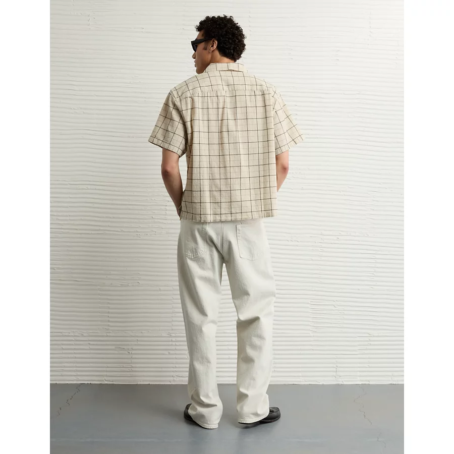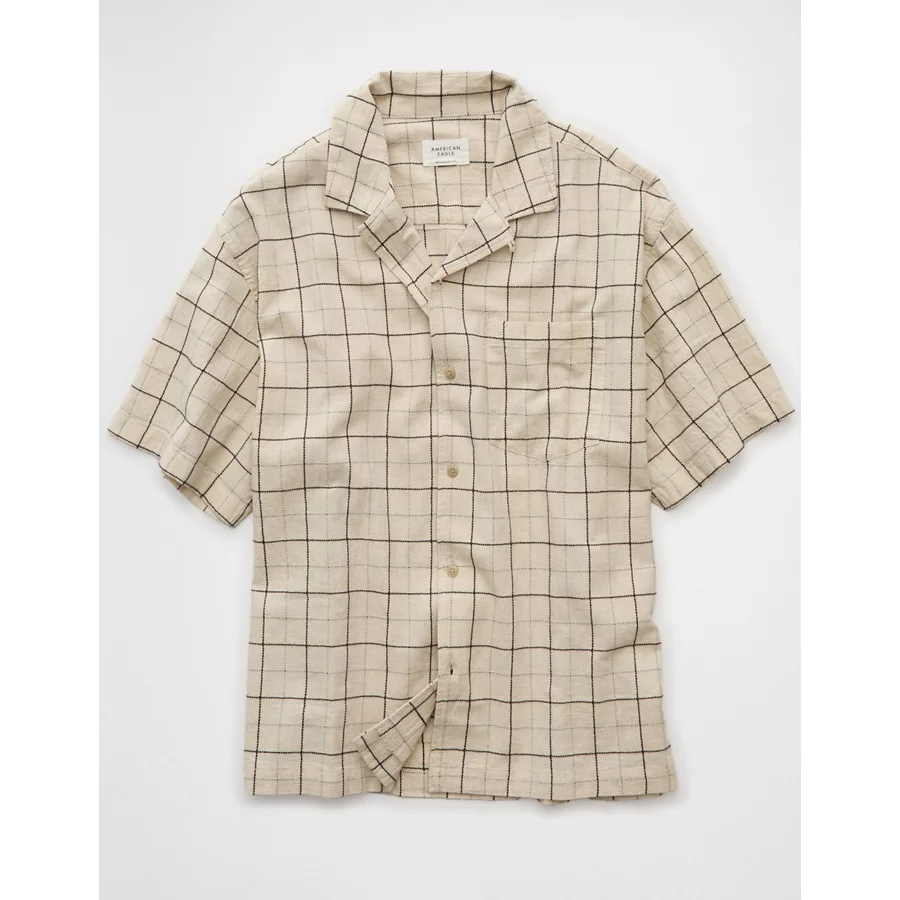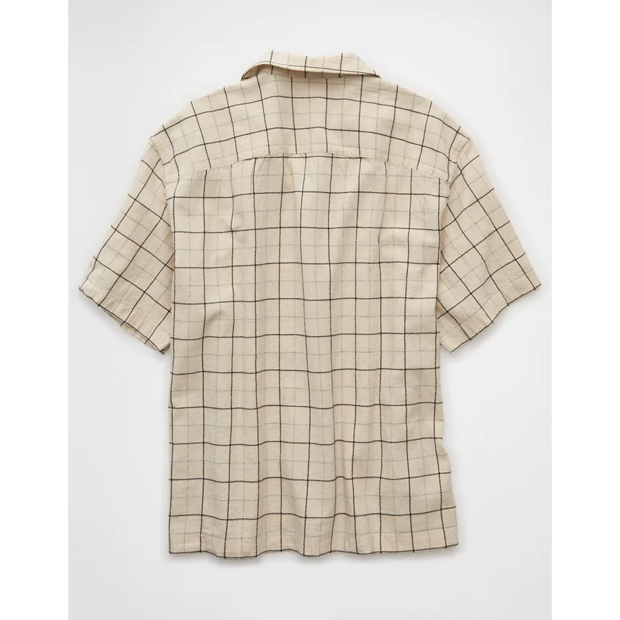 AE Poolside Linen-Blend Plaid Button-Up Shirt – Grey