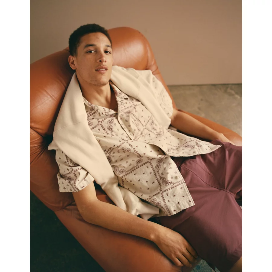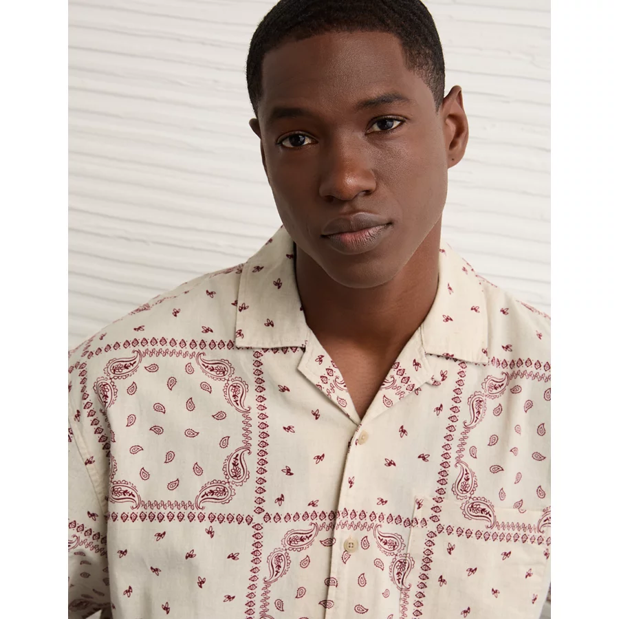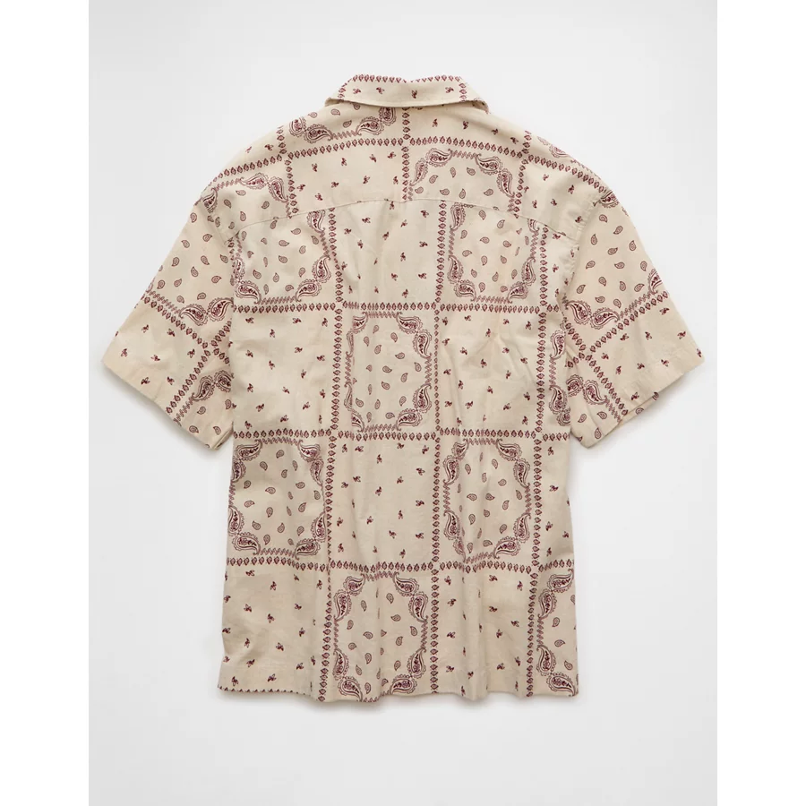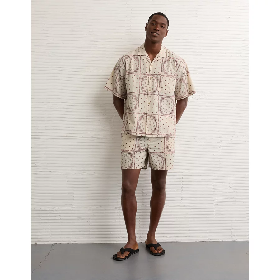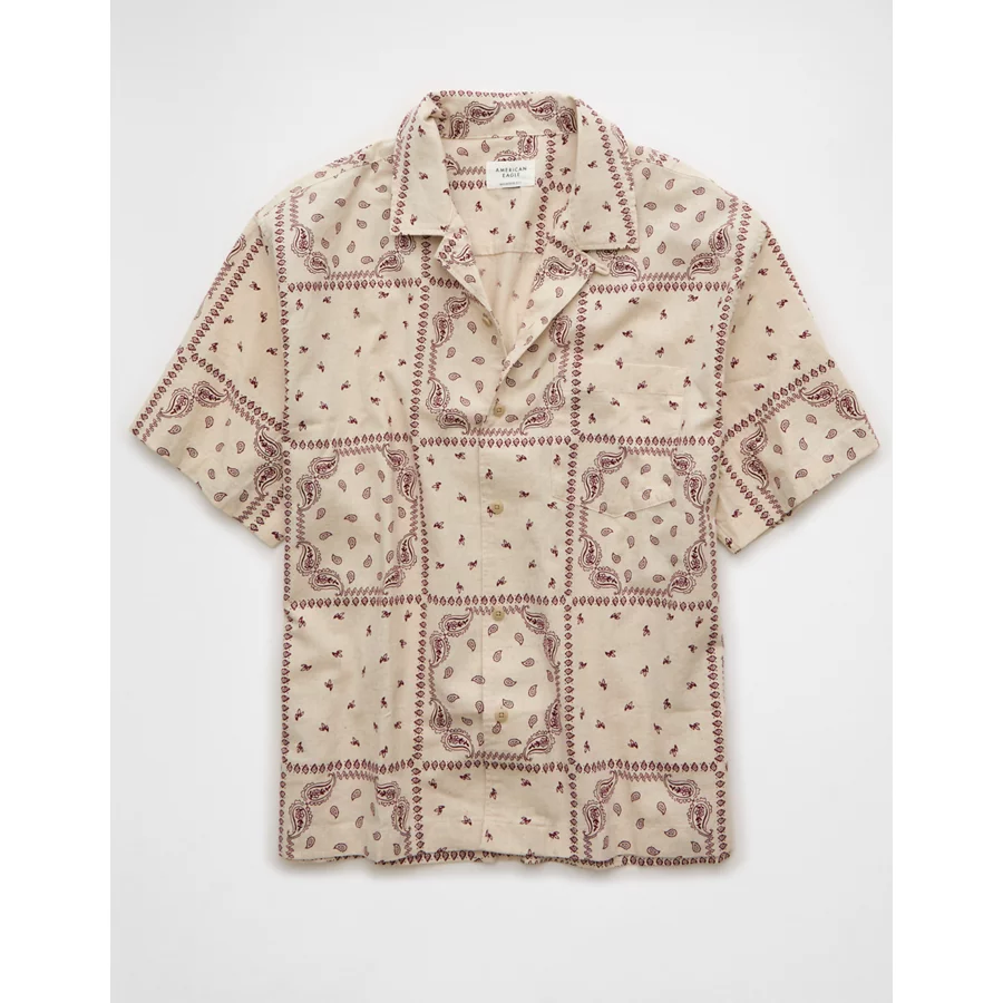 AE Poolside Linen-Blend Printed Button-Up Shirt – Cream