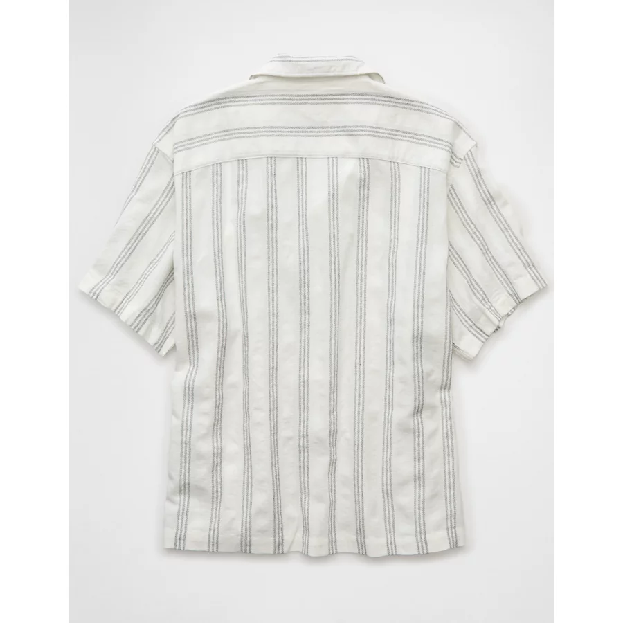 AE Poolside Linen-Blend Striped Button-Up Shirt – White
