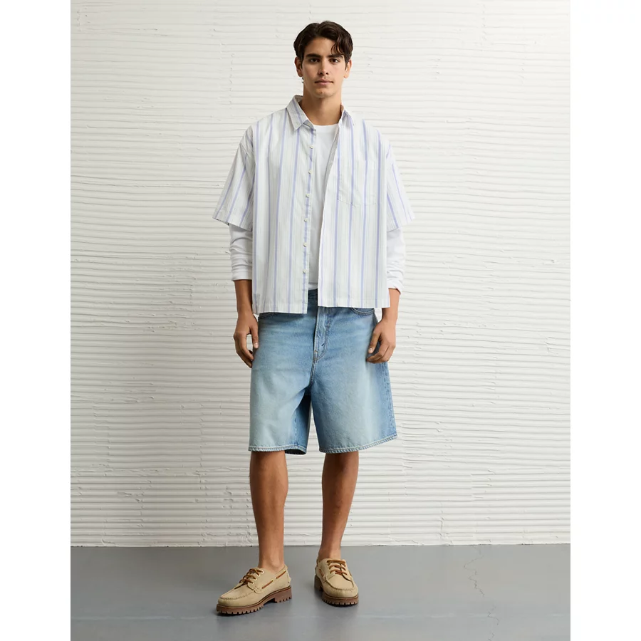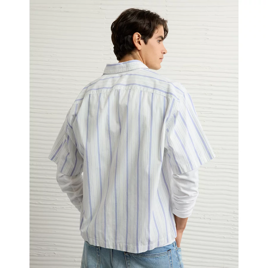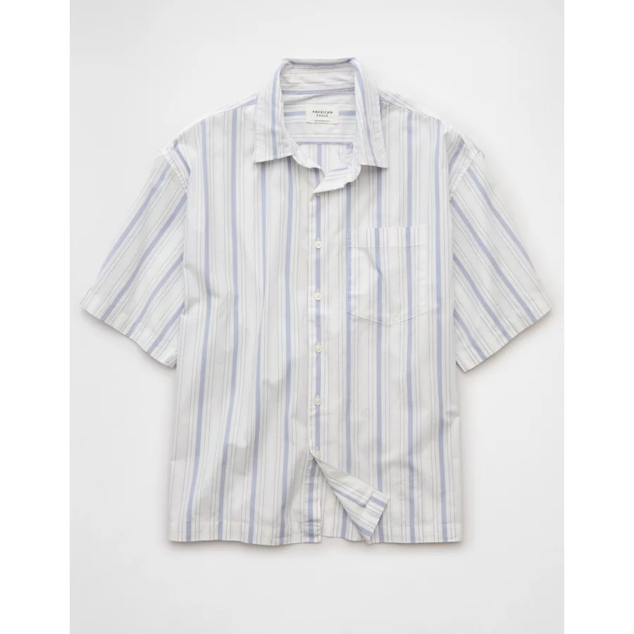 AE Poolside Poplin Striped Button-Up Shirt – Light Blue