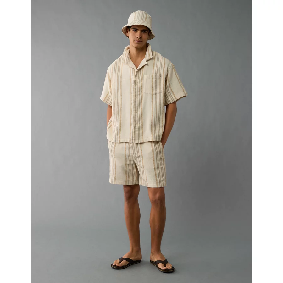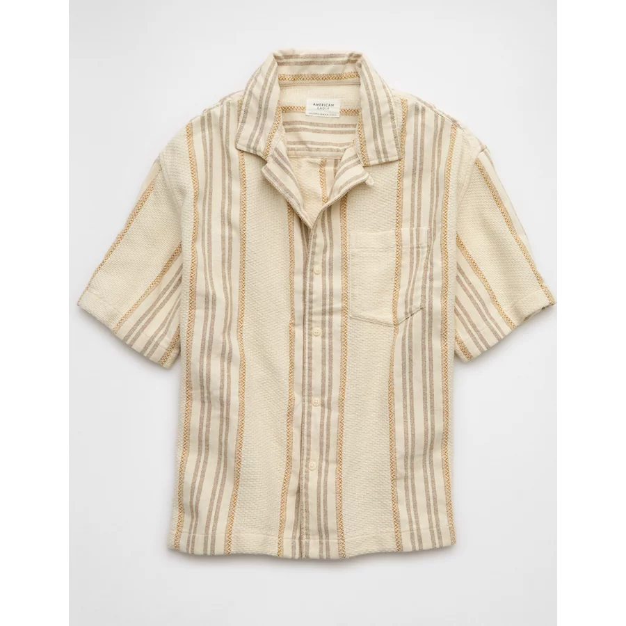AE Poolside Striped Button-Up Shirt – Cream