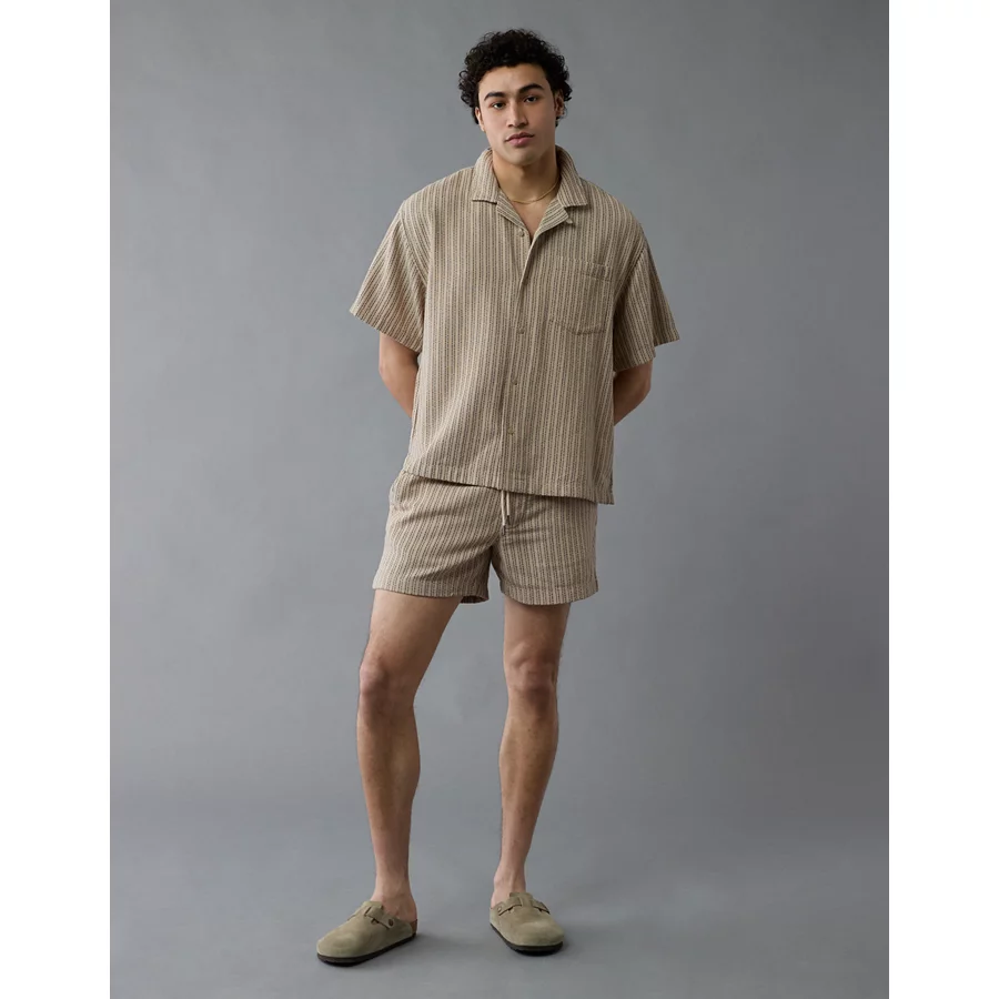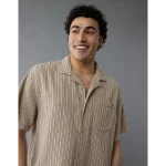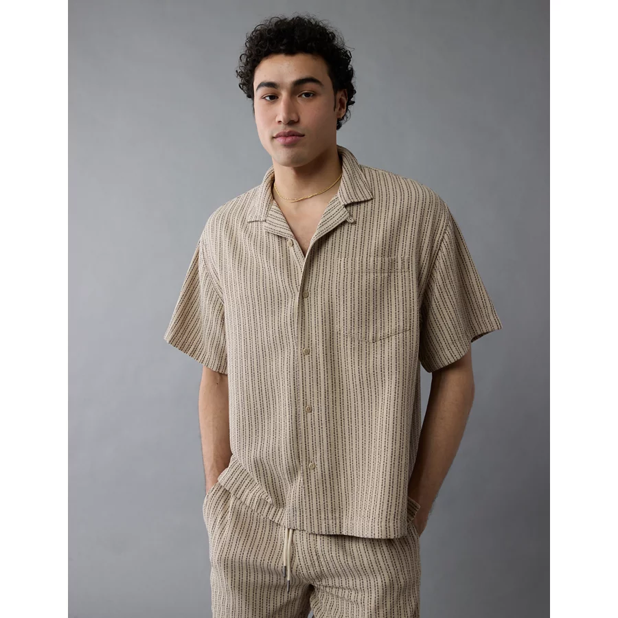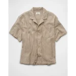AE Poolside Striped Button-Up Shirt – Dune Khaki