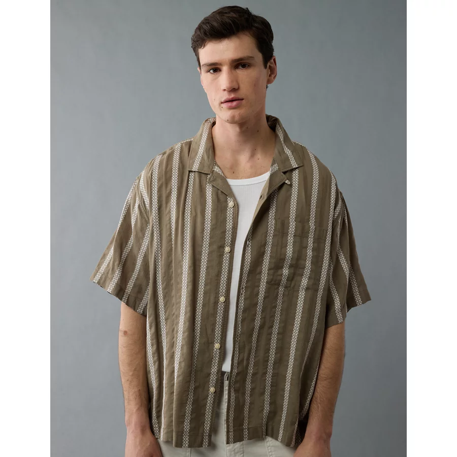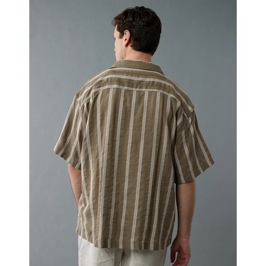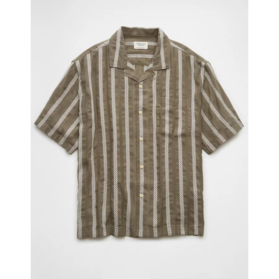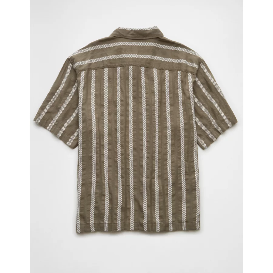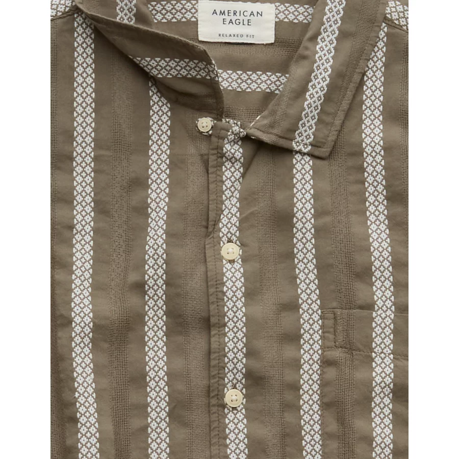 AE Poolside Striped Button-Up Shirt - Dune Khaki
