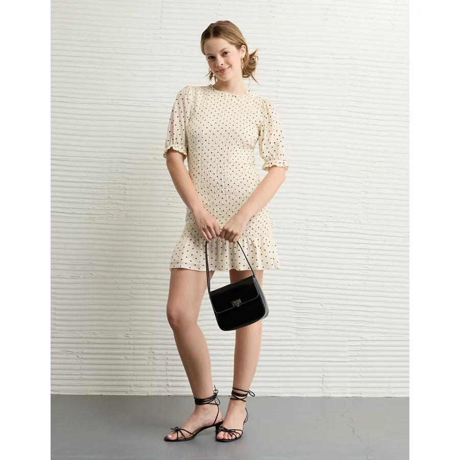 AE Puff Sleeve Smocked Mini Dress – Cream