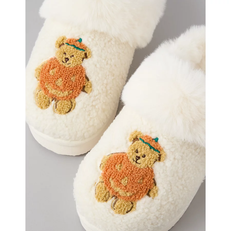 AE Pumpkin Teddy Bear Scuff Slipper – Ivory