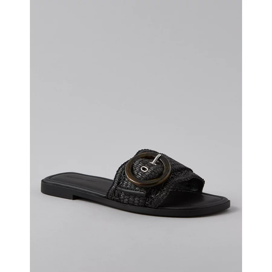 AE Raffia Buckle Slide Sandal - Dark Brown