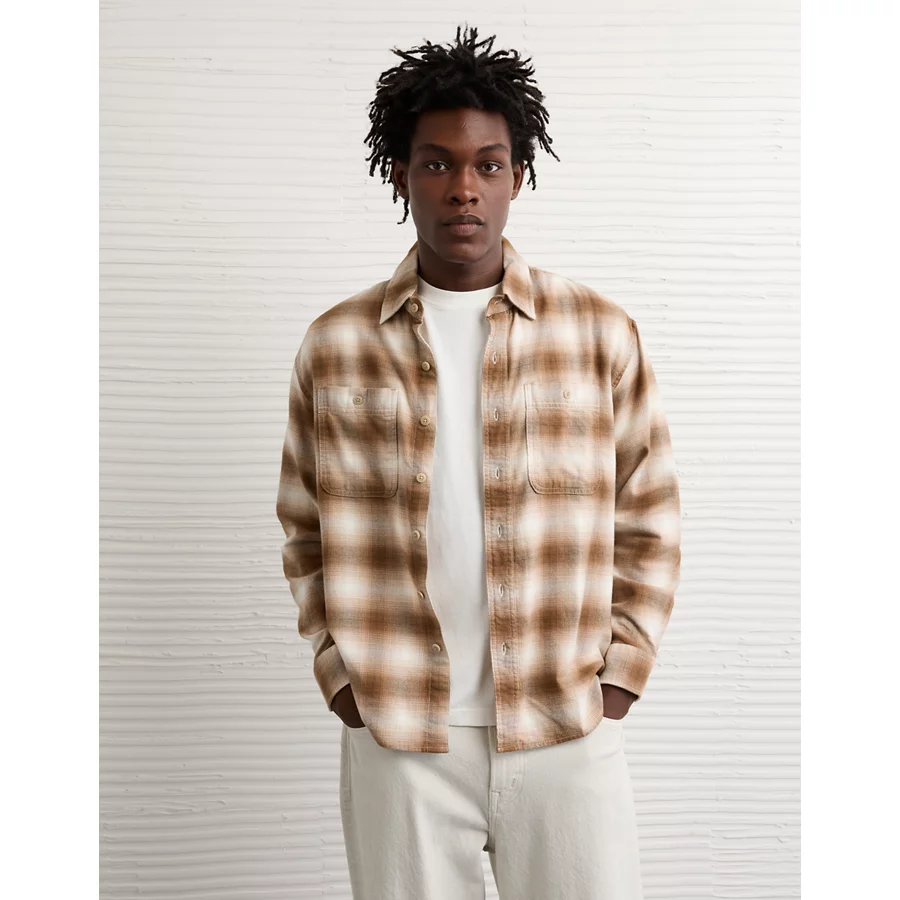 AE Relaxed Fit Everyday Flannel Shirt - Brown